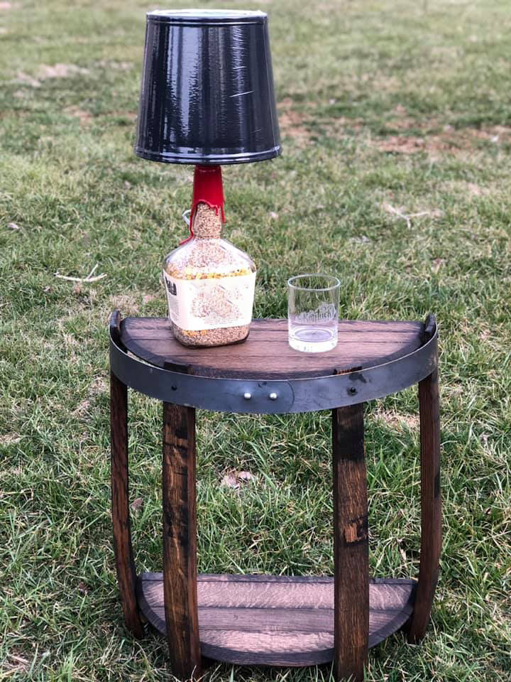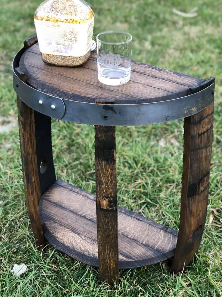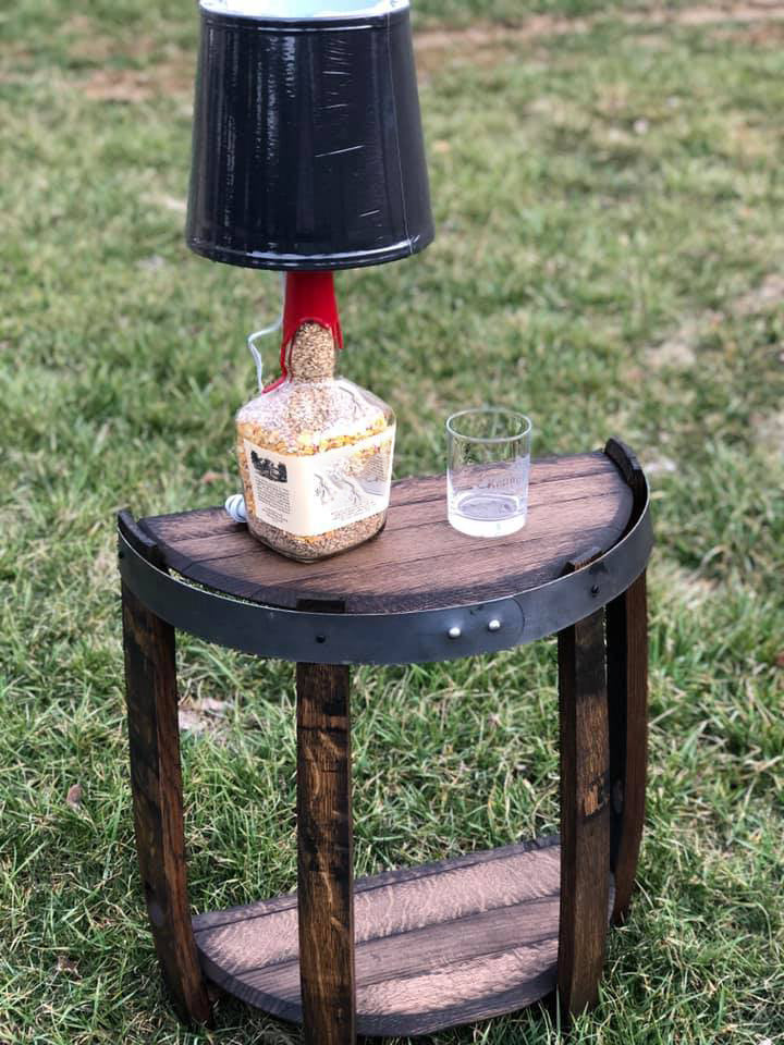 It's perfect for that small space that you need to have the perfect table for. Ours are made from Maker's Mark or Jim Beam. This table does come finished with the finest wood protector.