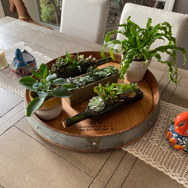 Whether given as a birthday, holiday or special occasion gift, the Handcrafted Oak Wine and Bourbon Barrel Lid Lazy Susan is a unique and memorable choice.