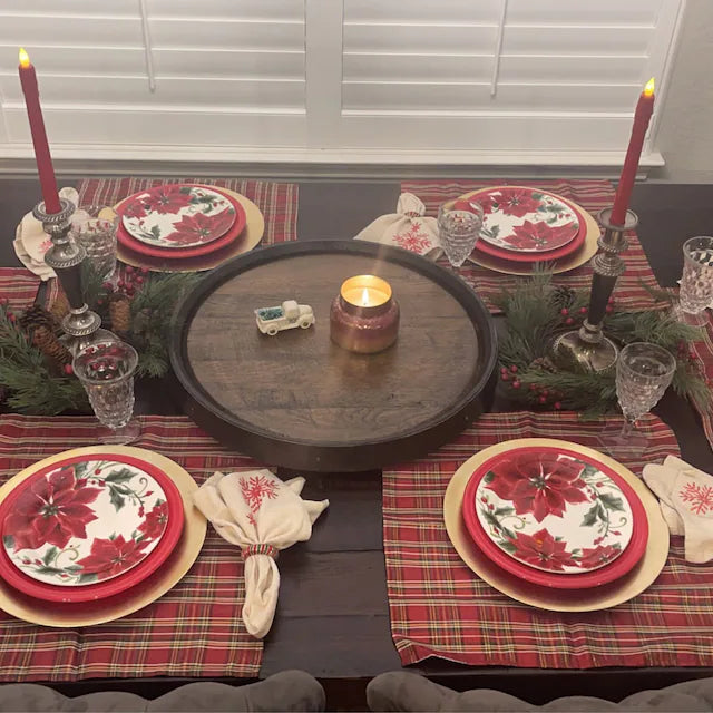 MATERIAL AND QUALITY: Handmade oak wine and bourbon barrel lid rotating dinner plates are usually made using high-quality oak and fine craftsmanship. This ensures their durability and elegant appearance. Choosing products made by our professional manufacturers ensures quality and longevity.