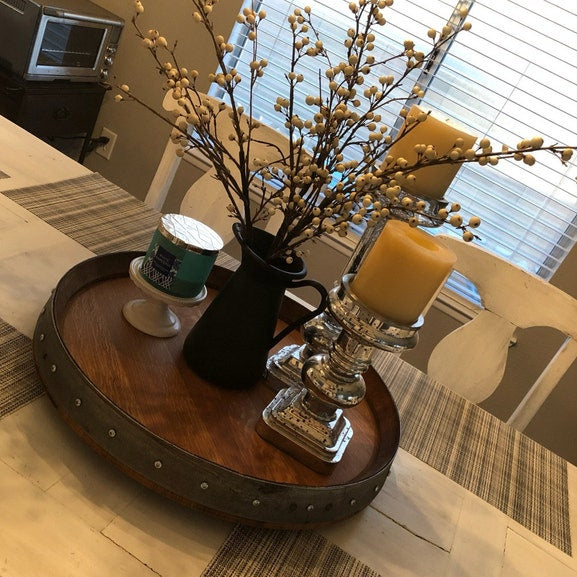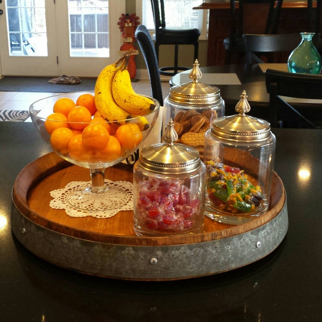 Each Lazy Susan is a one-of-a-kind handcrafted masterpiece. Because no two buckets are the same! Usually all barrel lids will have character markings which makes them authentic and rustic in appearance! Will bring a fun historical feel and a charming look to your retro cottage or modern farmhouse decor.