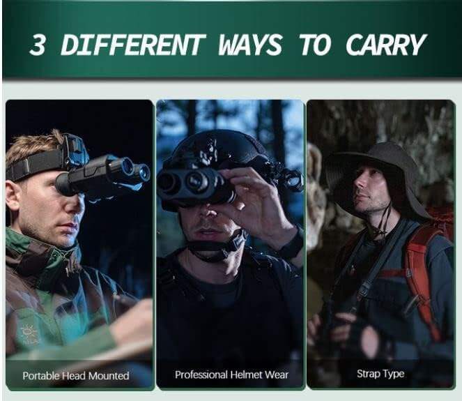 - 🥽【 4K HIGH-PERFORMANCE NIGHT VISION GOGGLES 】- Our upgraded 4K head mounted night vision binoculars features 3d display, adjustable 7 level IR infrared spotlight and brightness control . Built in dual screen with 1.4-inch 390x390 TFT inner screen. This high-powered professional light weight helmet NVG binoculars allows you to capture a clear photo or video even in 100% darkness at a range of 3000m.