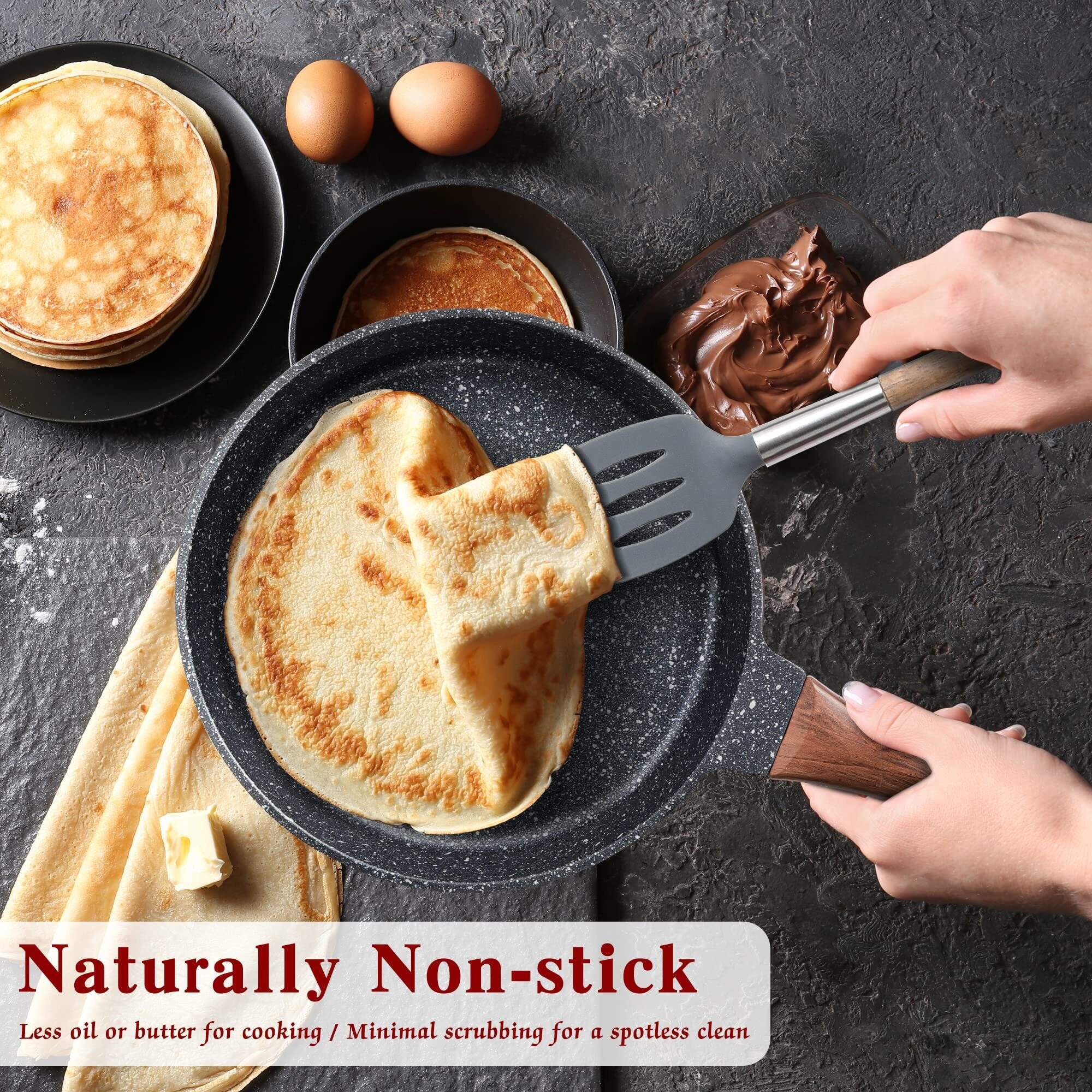 - ¡¾What Is A Good nonstick Pan¡¿- Non-stick performance is the key. Compared to other ordinary non-stick pans, our nonstick set adds 4 layers of non-stick coating, which means that the frying pans can better demonstrate long-lasting non-stick. Less oil or butter for cooking will release the food easily. Ideal for every cooking master.