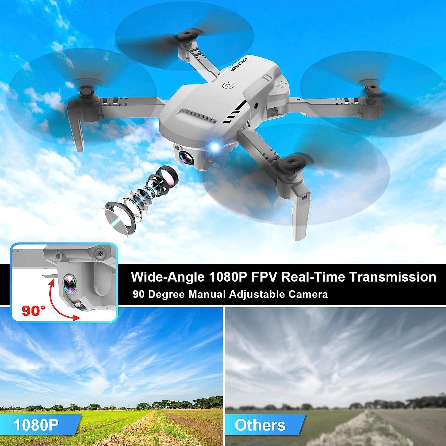 - 【1080P Adjustable FPV Drone & APP Control】Equipped with a 1080P HD 90° manually adjustable lens, the drone provides a wider breathtaking field of view. It assists you to catch every wonderful moment from a birds-eye perspective, and lets you enjoy 1080P HD pictures and videos via the “RADCLOFPV” APP. By connecting your phone/iPad with the long-distance drones with cameras, you can enjoy a real-time panoramic view, and share them on your social media with ease.