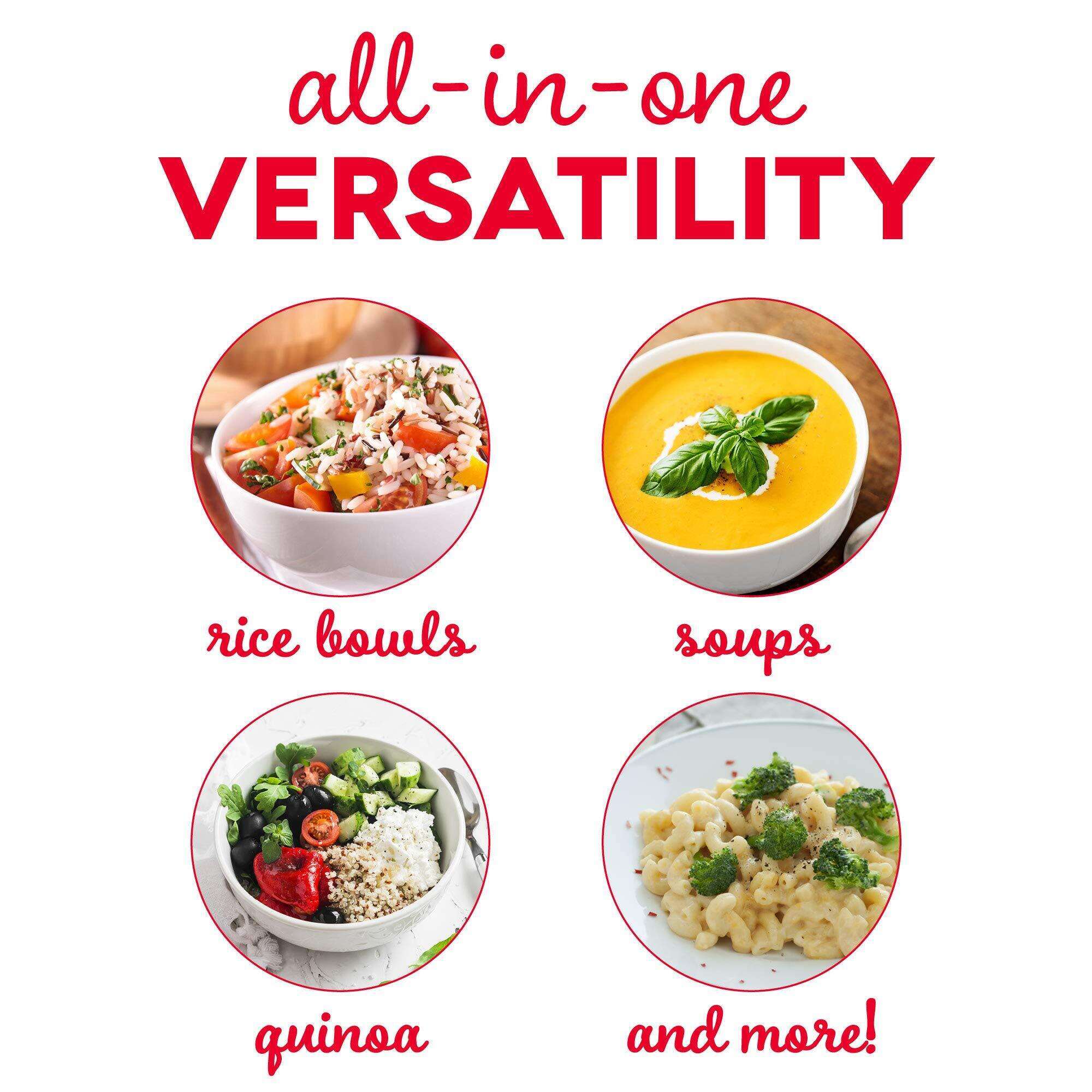 • MORE THAN RICE: Oatmeal, stew, soup, quinoa, rice, and pasta. The 2-cup capacity allows for healthier portion control, or individual, quick and easy breakfast, lunch, dinner, snacks, or sides.