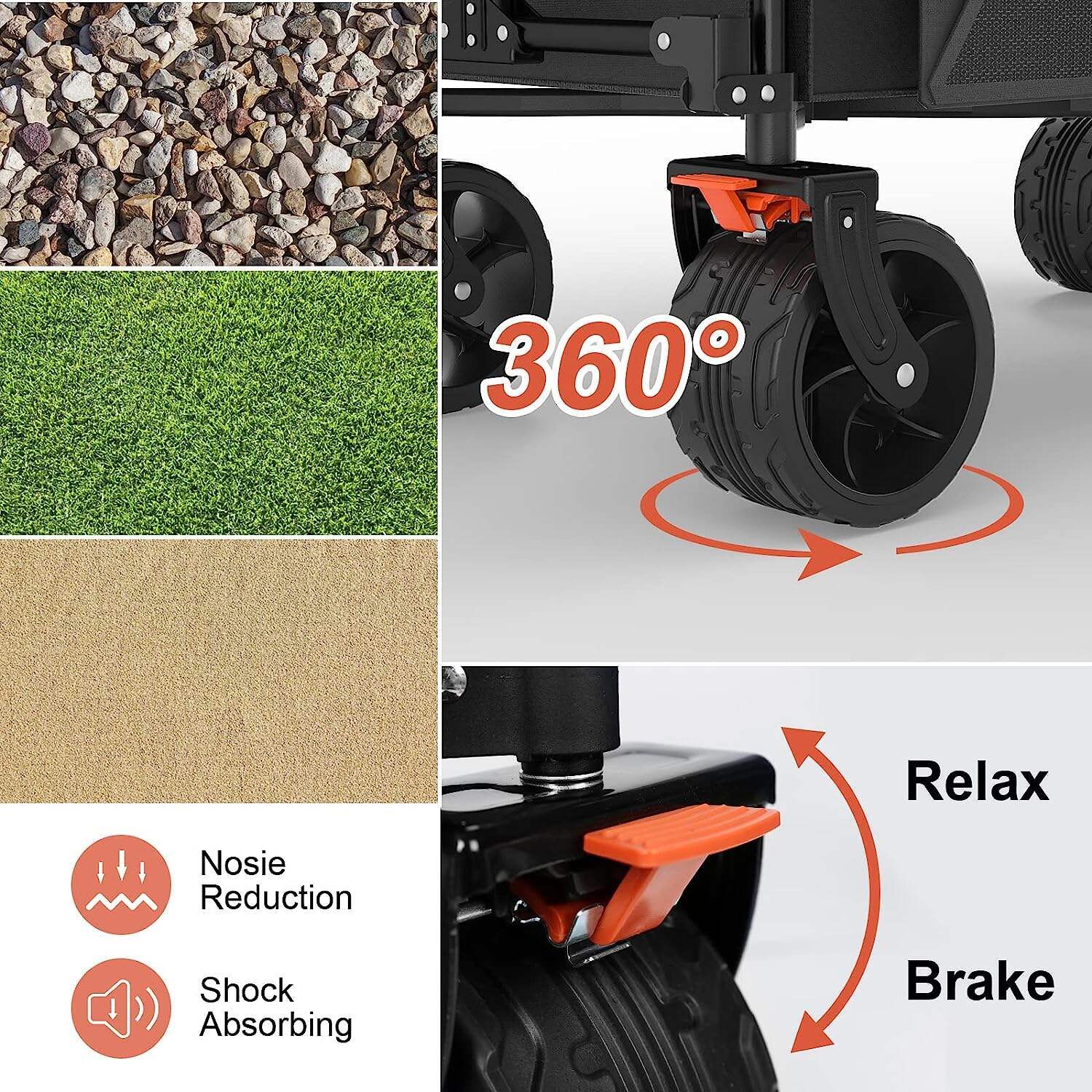 Navatiee Collapsible Folding Wagon, Beach Wagon Cart Heavy Duty Foldable with Big Wheels