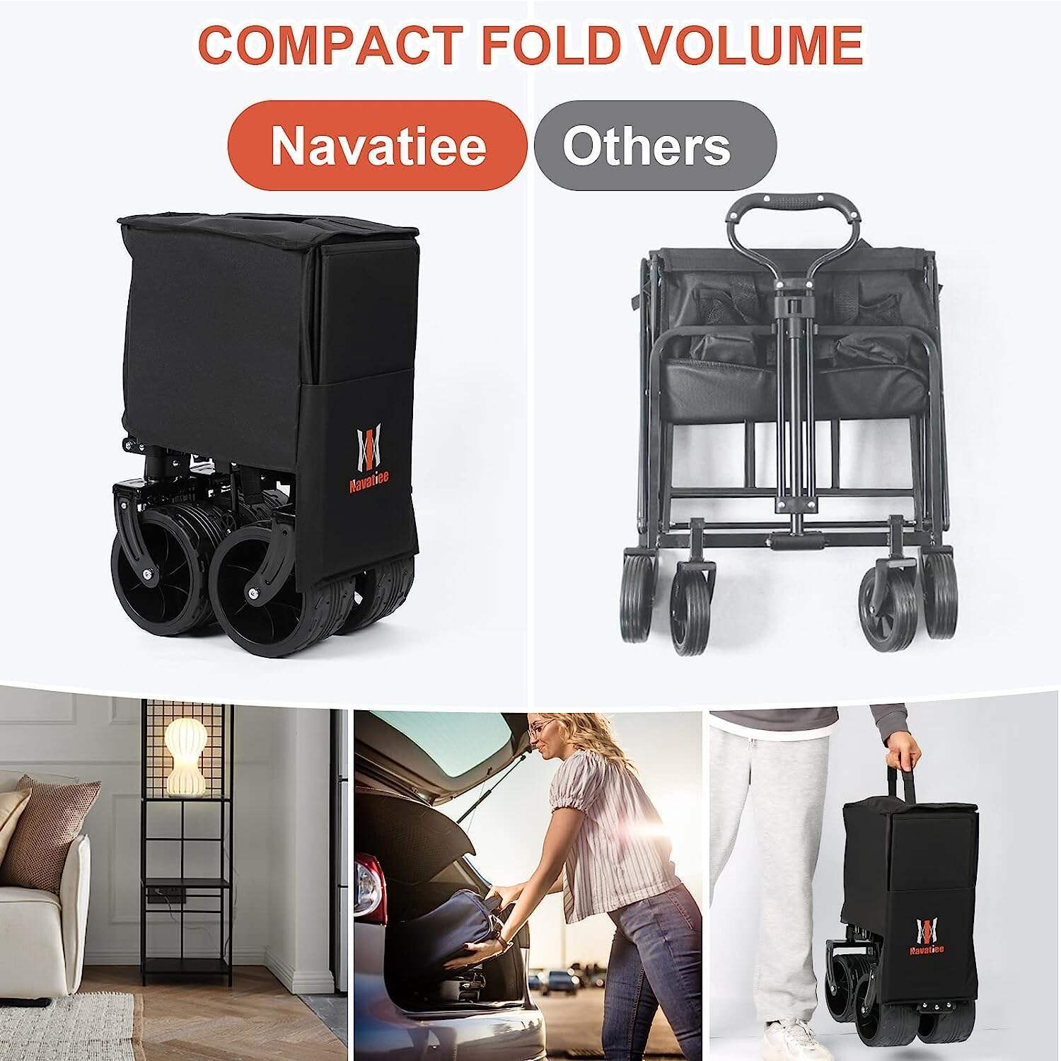 • Navatiee Collapsible Folding Wagon, Beach Wagon Cart Heavy Duty Foldable with Big Wheels