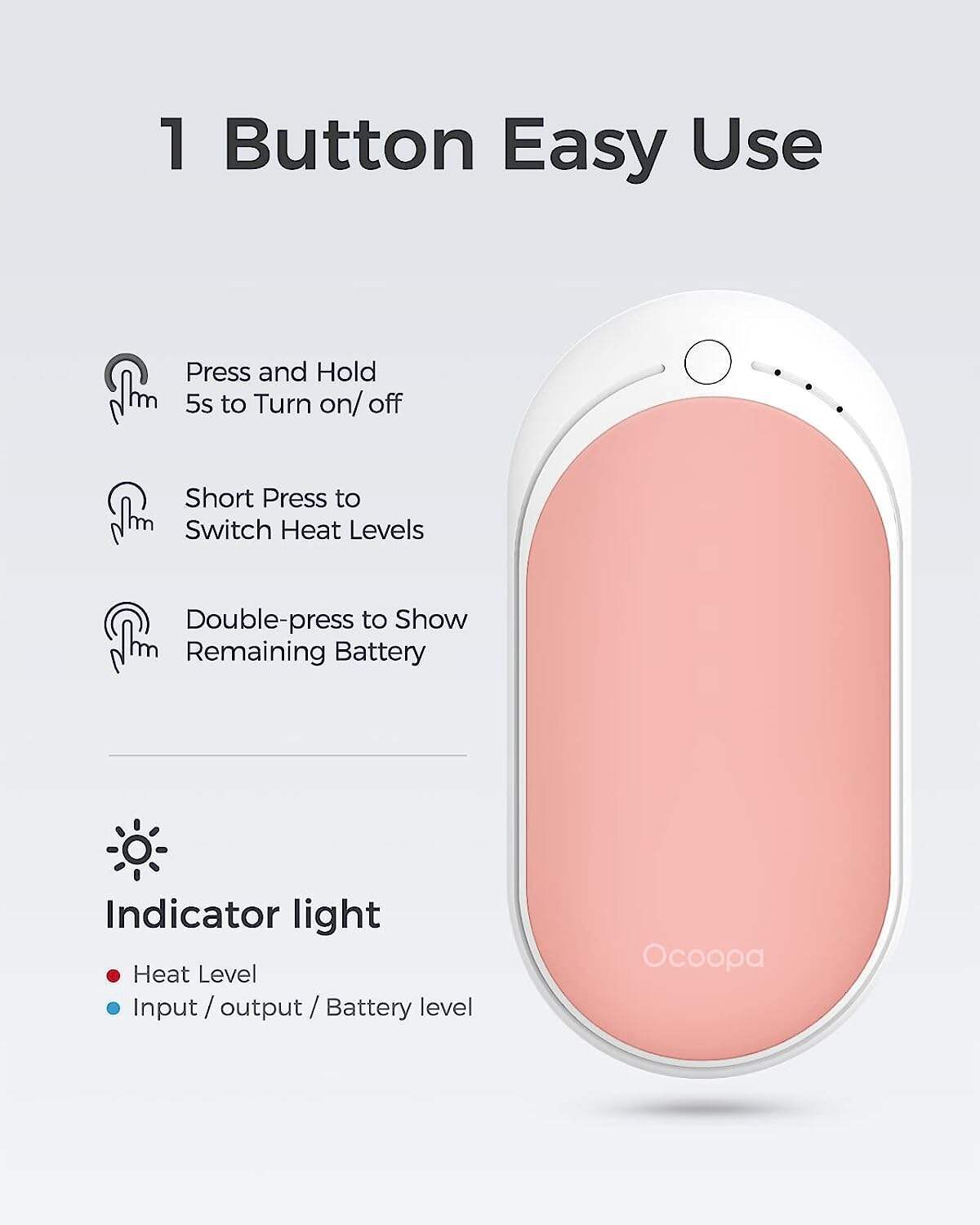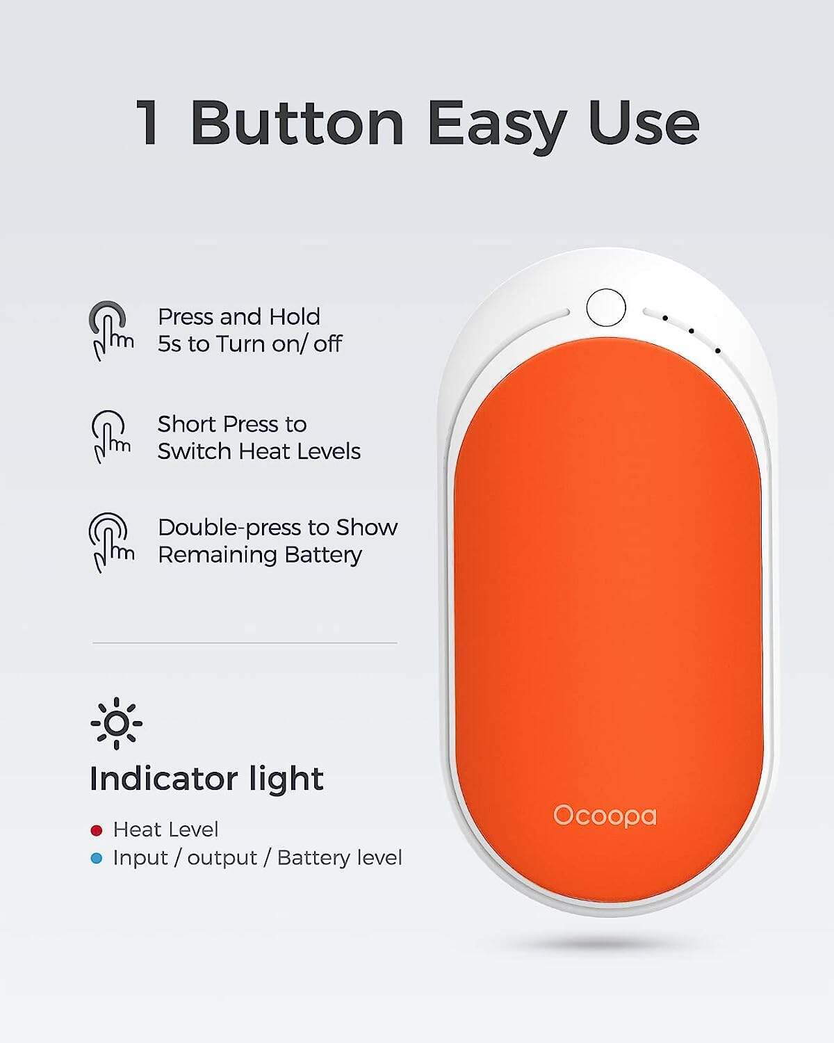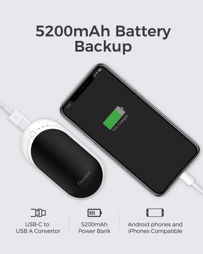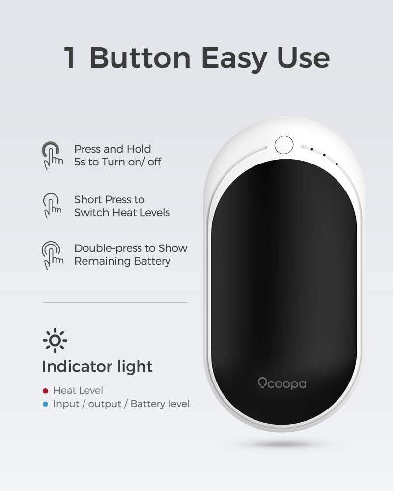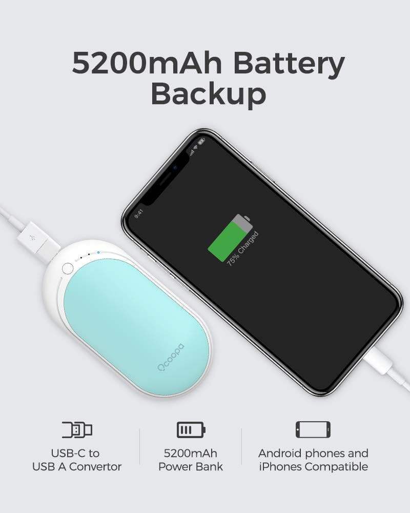 • OCOOPA Hand Warmers Rechargeable, 1 Pack 5200mAh Electric Portable Pocket Heater, Heat Therapy Great for Raynauds, Hunting, Golf, Camping, Women Mens Gifts
