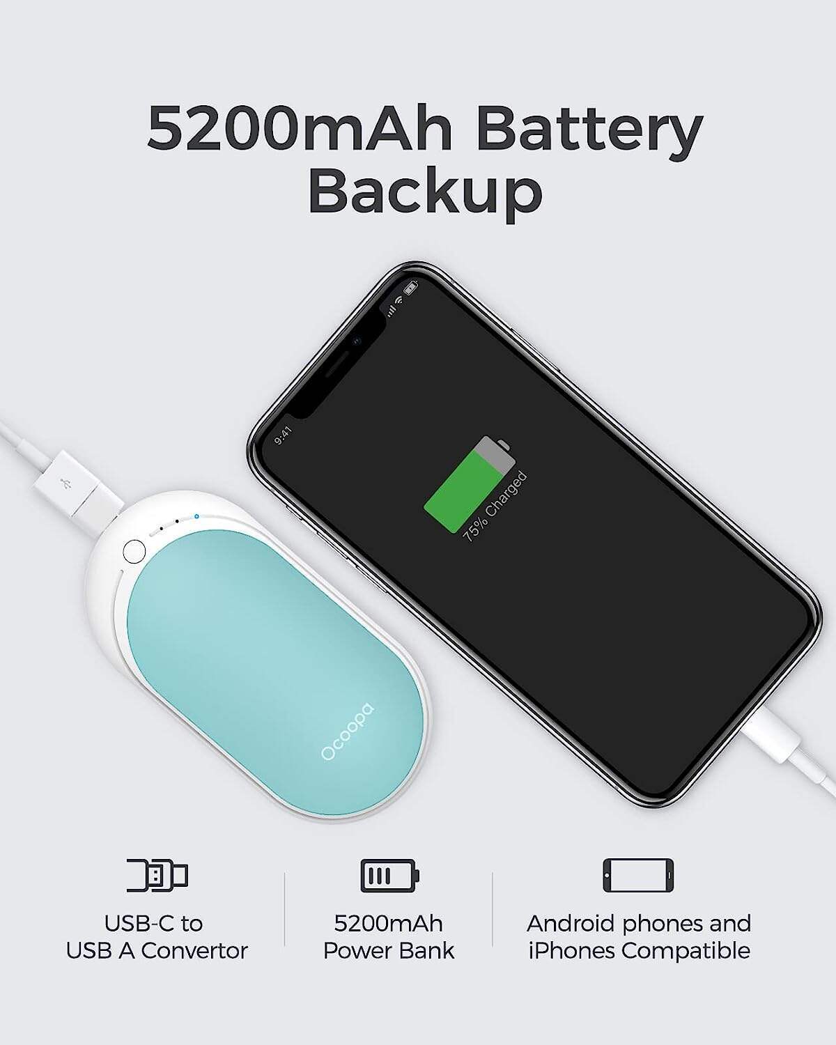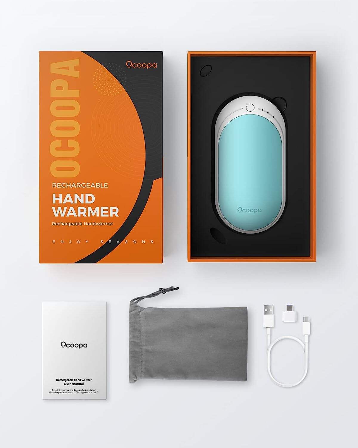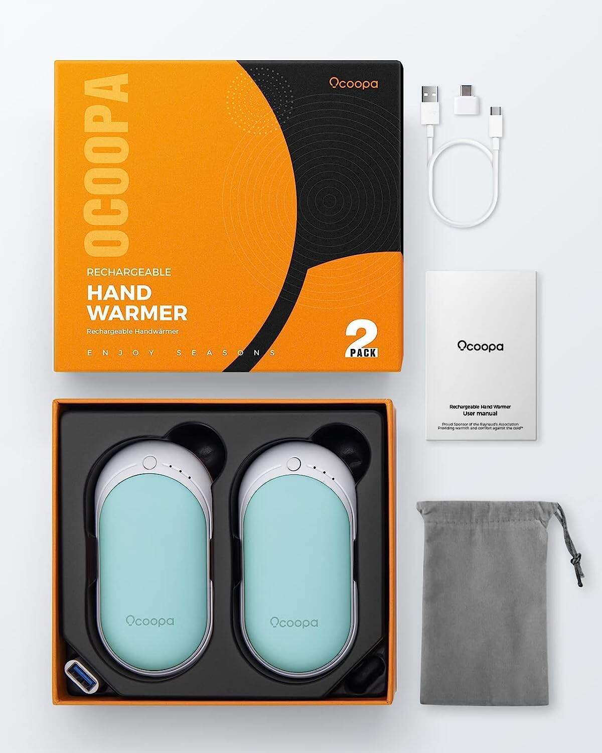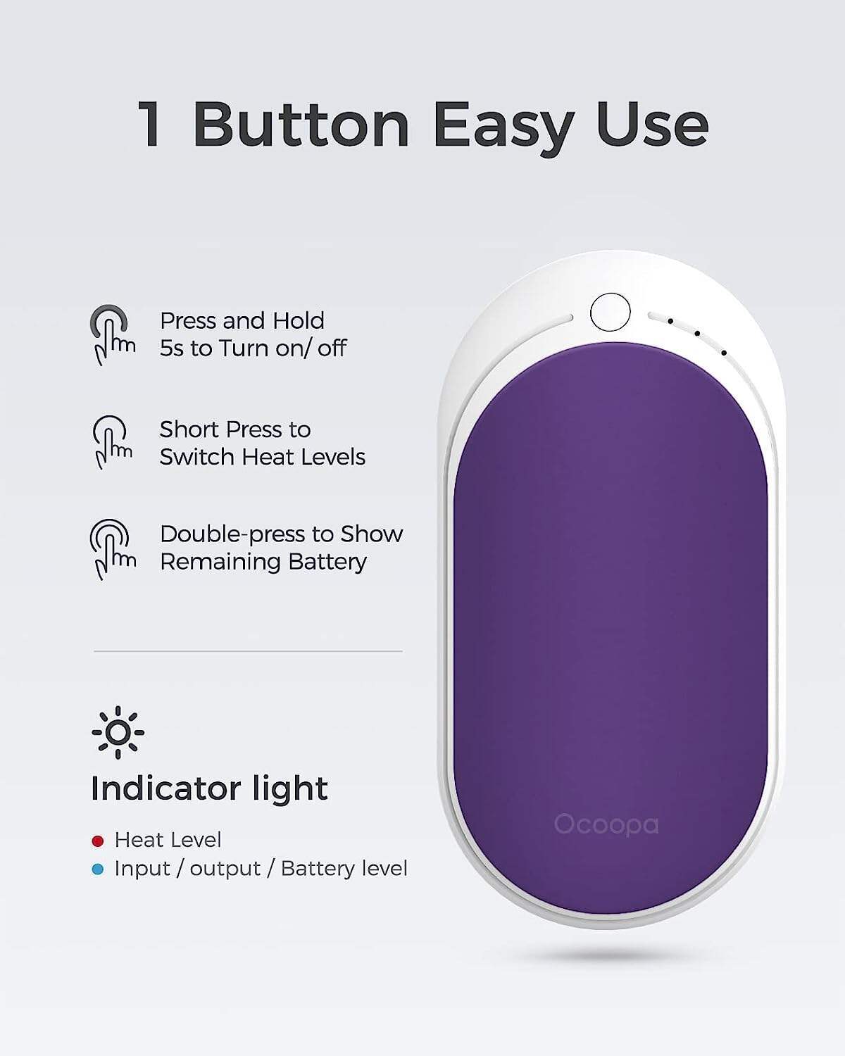 • OCOOPA Hand Warmers Rechargeable, 1 Pack 5200mAh Electric Portable Pocket Heater, Heat Therapy Great for Raynauds, Hunting, Golf, Camping, Women Mens Gifts