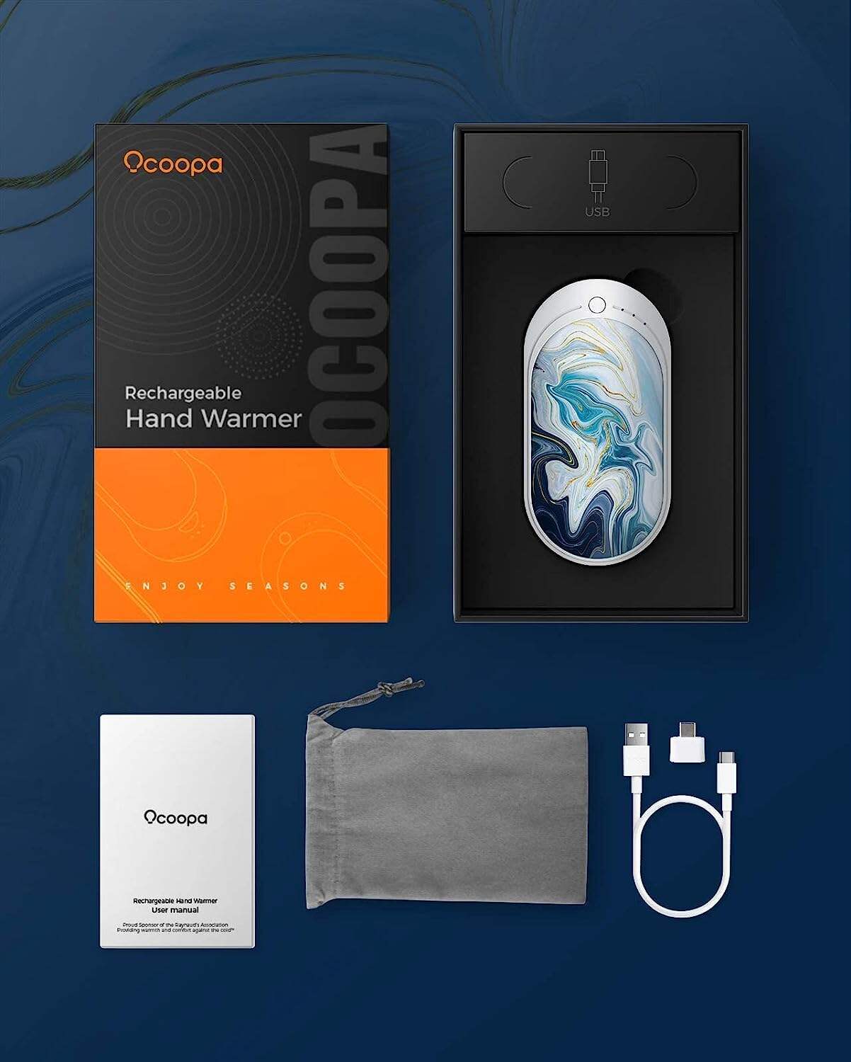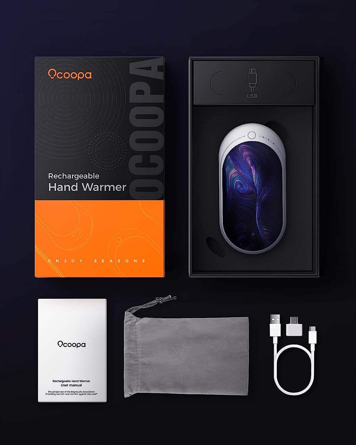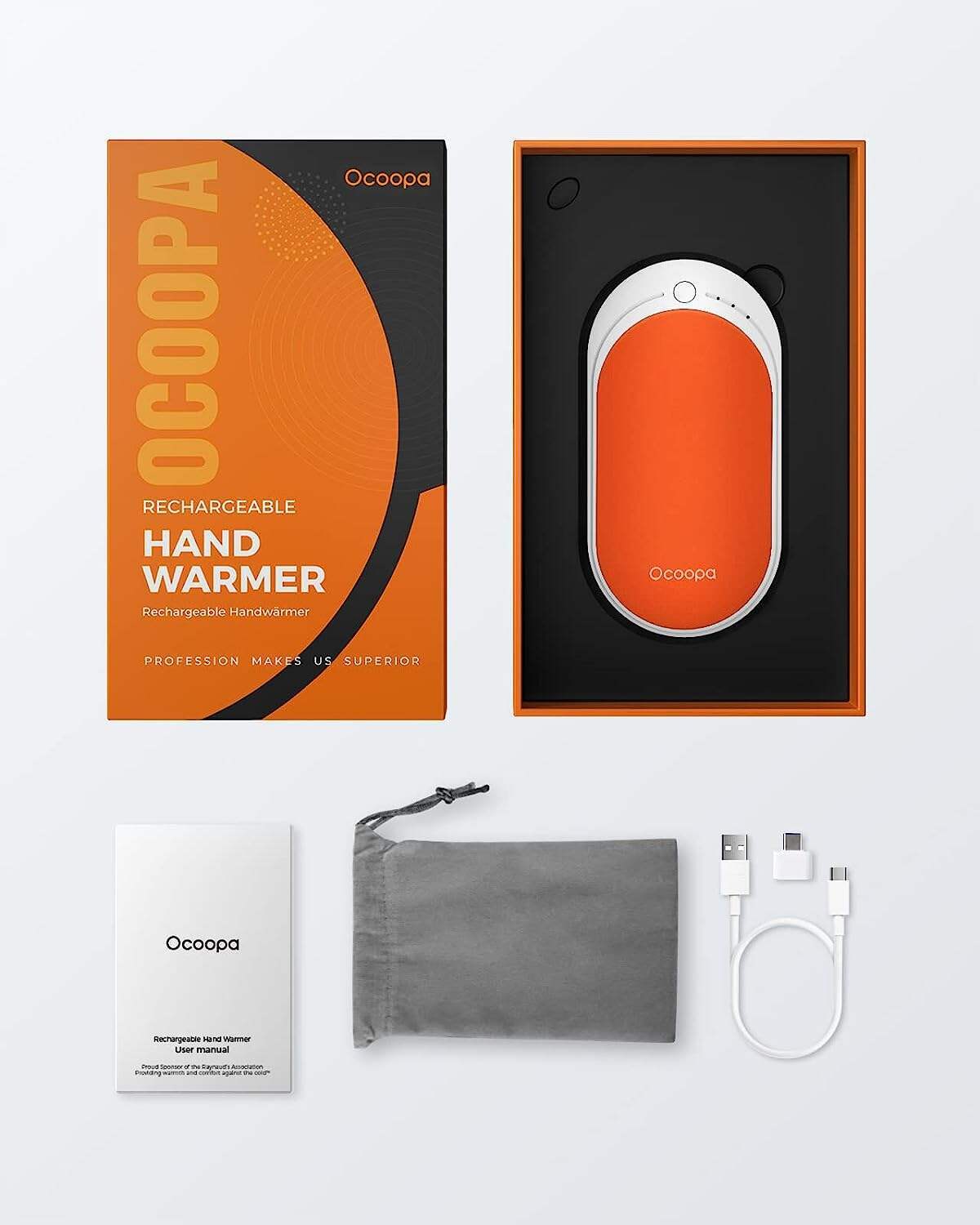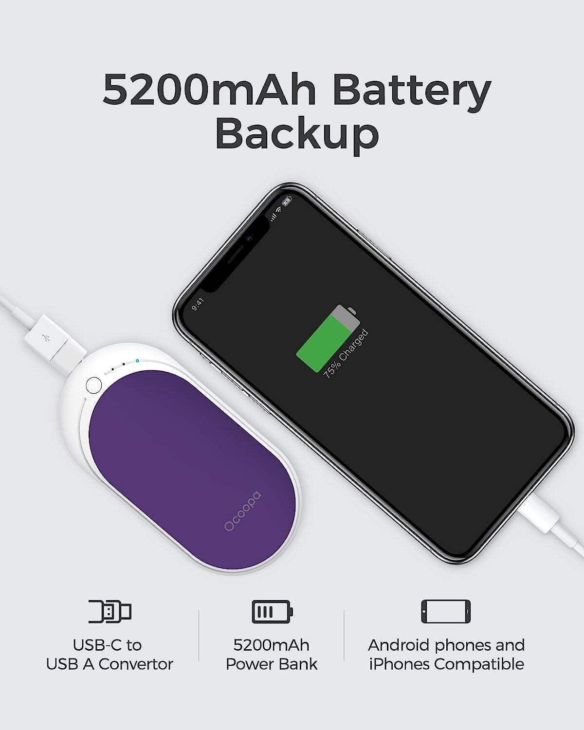 • OCOOPA Hand Warmers Rechargeable, 1 Pack 5200mAh Electric Portable Pocket Heater, Heat Therapy Great for Raynauds, Hunting, Golf, Camping, Women Mens Gifts