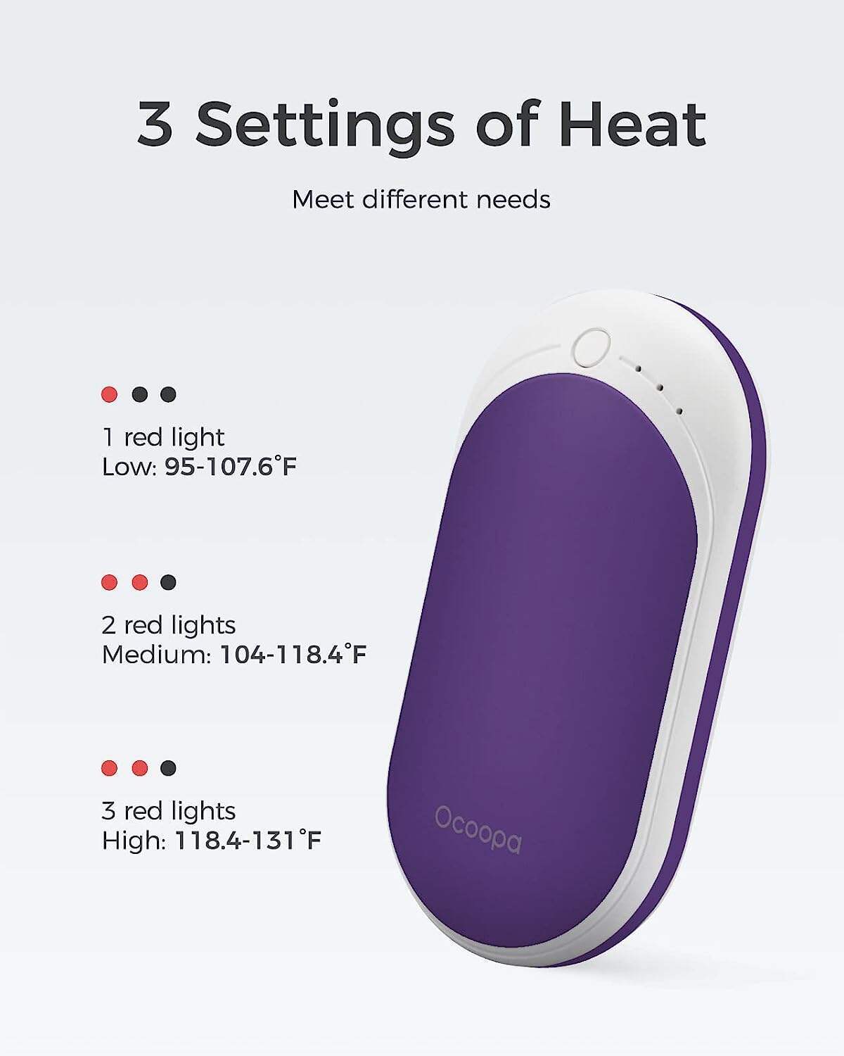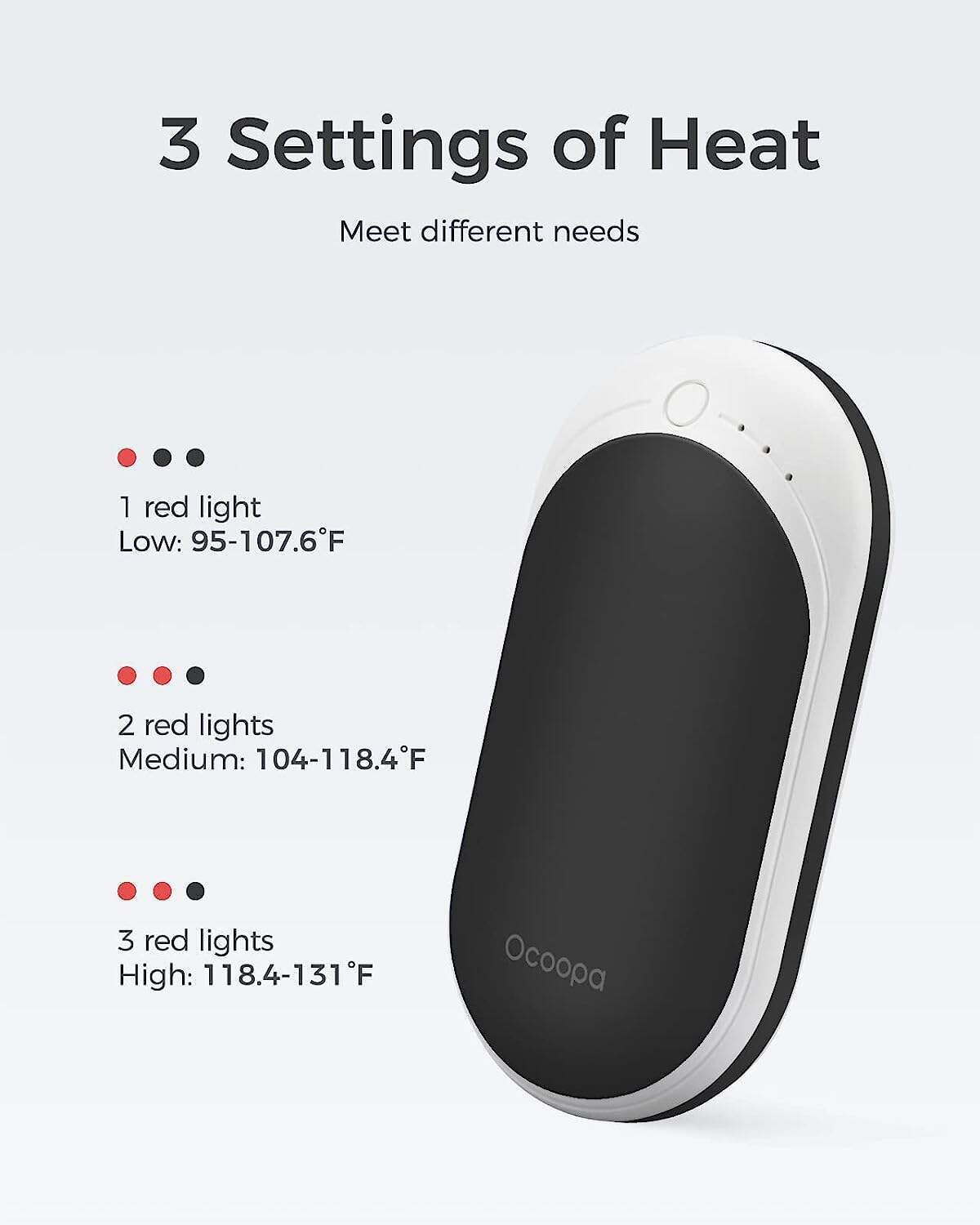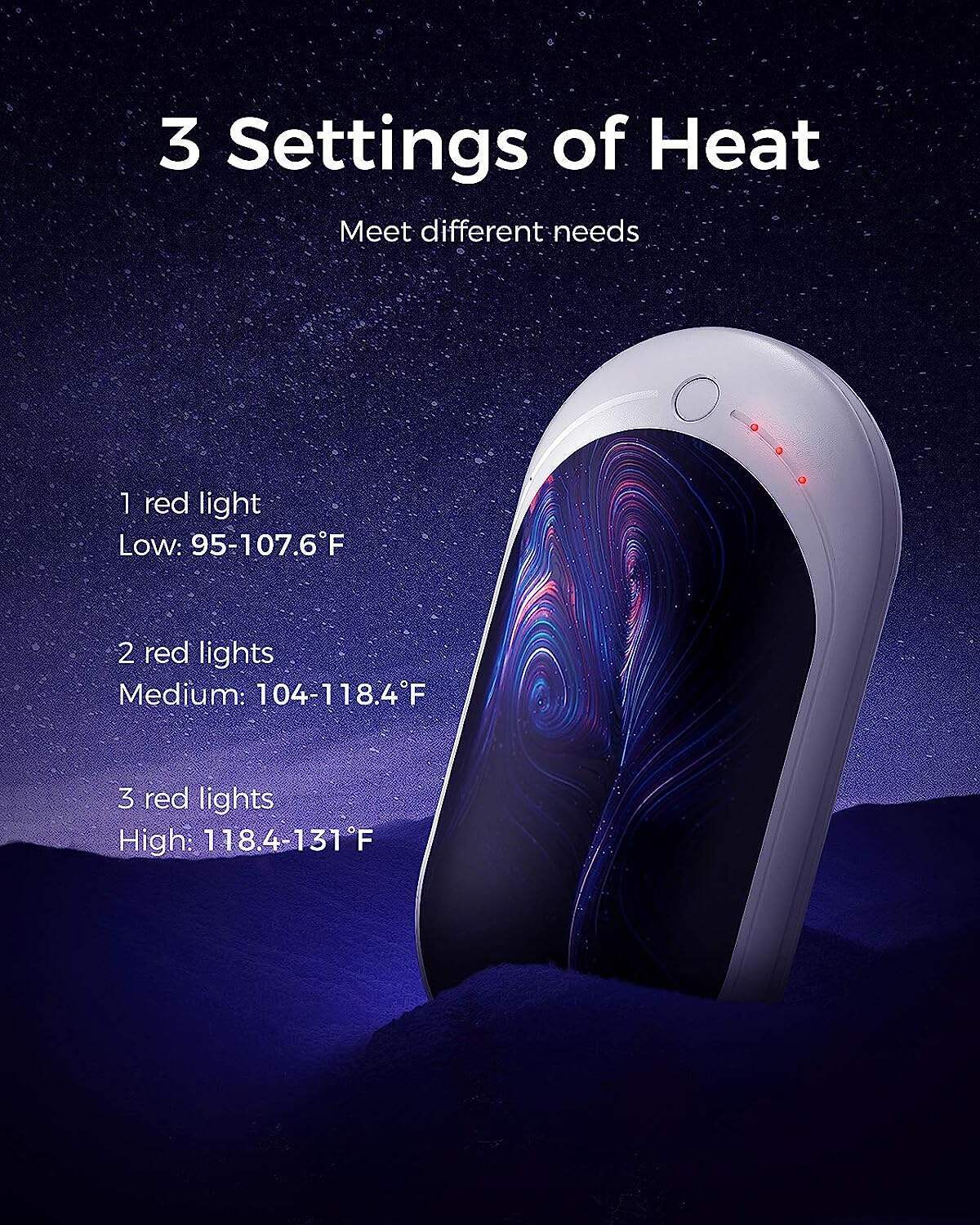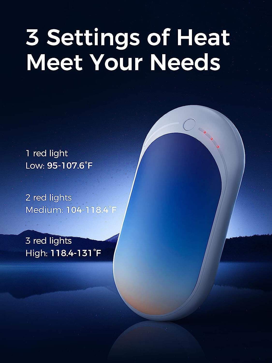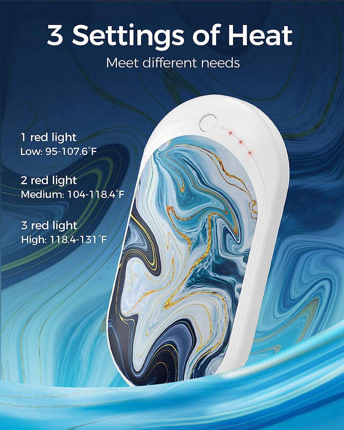 • FAST HEATING & 3 LEVELS - Press the switch and instantly release the warmth for you. Rapidly warm up double sides in seconds. 3 levels of temperatures 95-107°F/104-118°F/118-131°F at your choice.