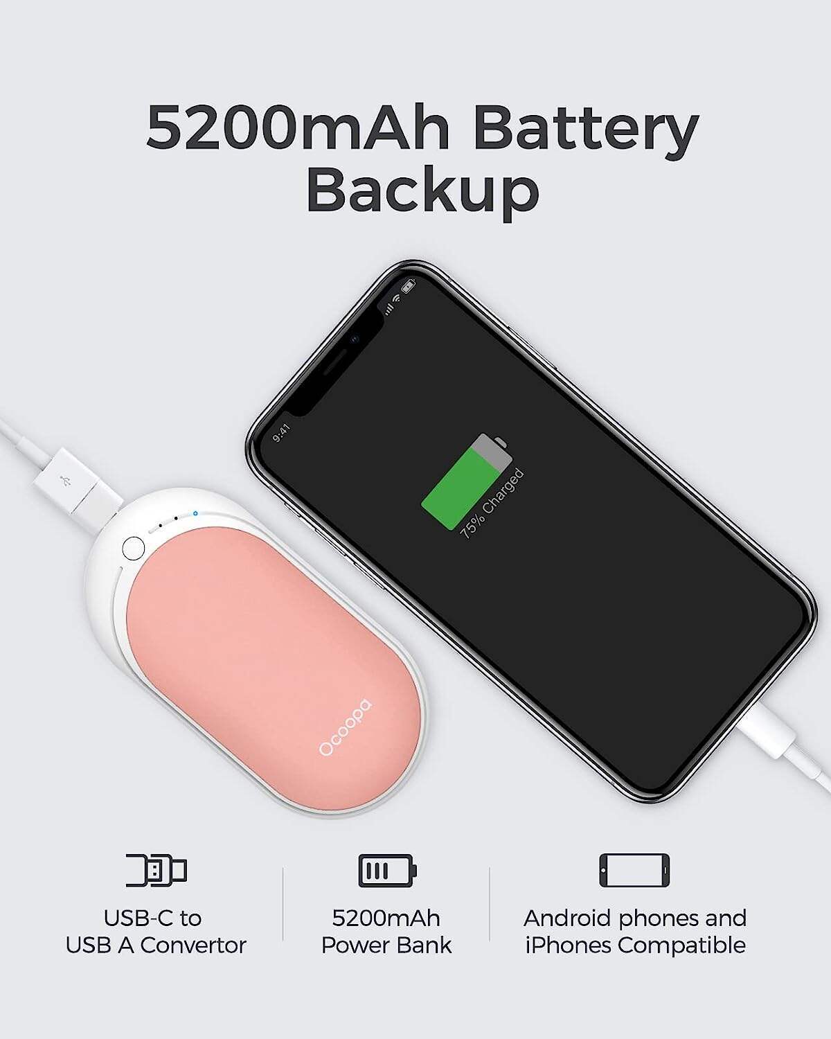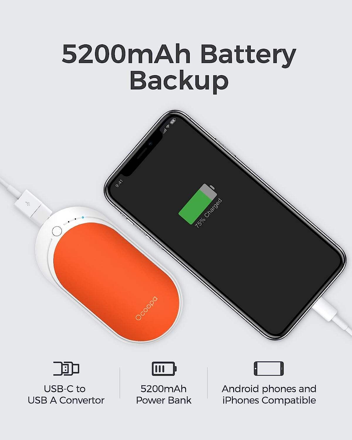 • LARGE BATTERY CAPACITY - 5200 mAh lithium rechargeable battery with USB-C charging port ensures a long using time. It can also be used as a power bank to charge your electronic device at any time.