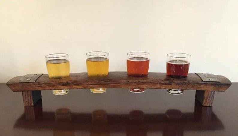 Are you looking for the perfect MANCAVE gift? Beer and Shot Glass Flight Trays made from a reclaimed whiskey barrels. We use the American Oak and steel hoops from the reclaimed barrels to create a unique, rustic, yet classical pieces to serve taste flights of your favorite beers and liquors. Includes 5oz. beer tasting glasses or 1.5oz shot glasses depending on your choice.