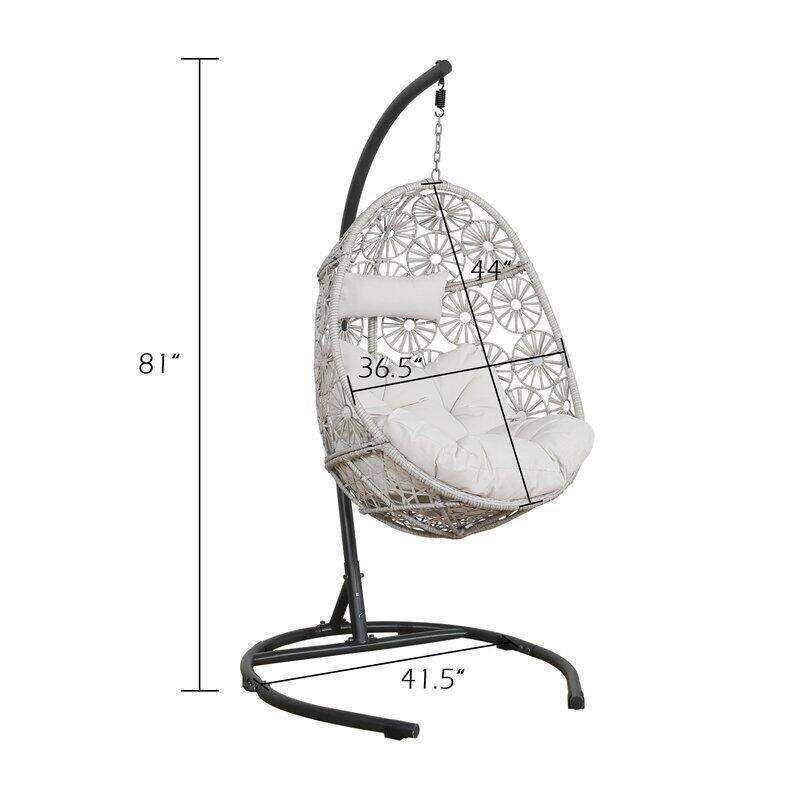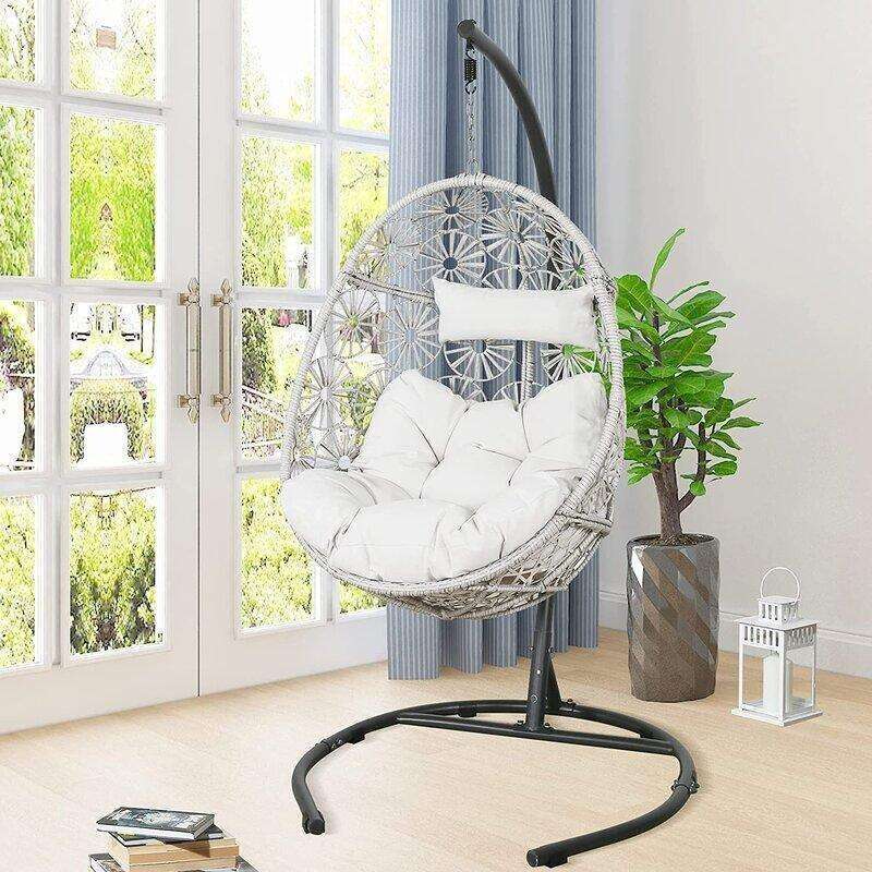 We are proud to present this classically designed swing for you. Beautiful patterns woven from high-quality wicker give this hammock swing chair an eye-catching look, classic colors blend well with a variety of decorative styles, and ergonomic cushion and headrest pillow provide you the ultimate comfort. In particular, this egg hanging chair suitable for both indoor and outdoor use. It is undoubtedly a good choice to sit on it for a nap or enjoy the breeze on the balcony or patio.