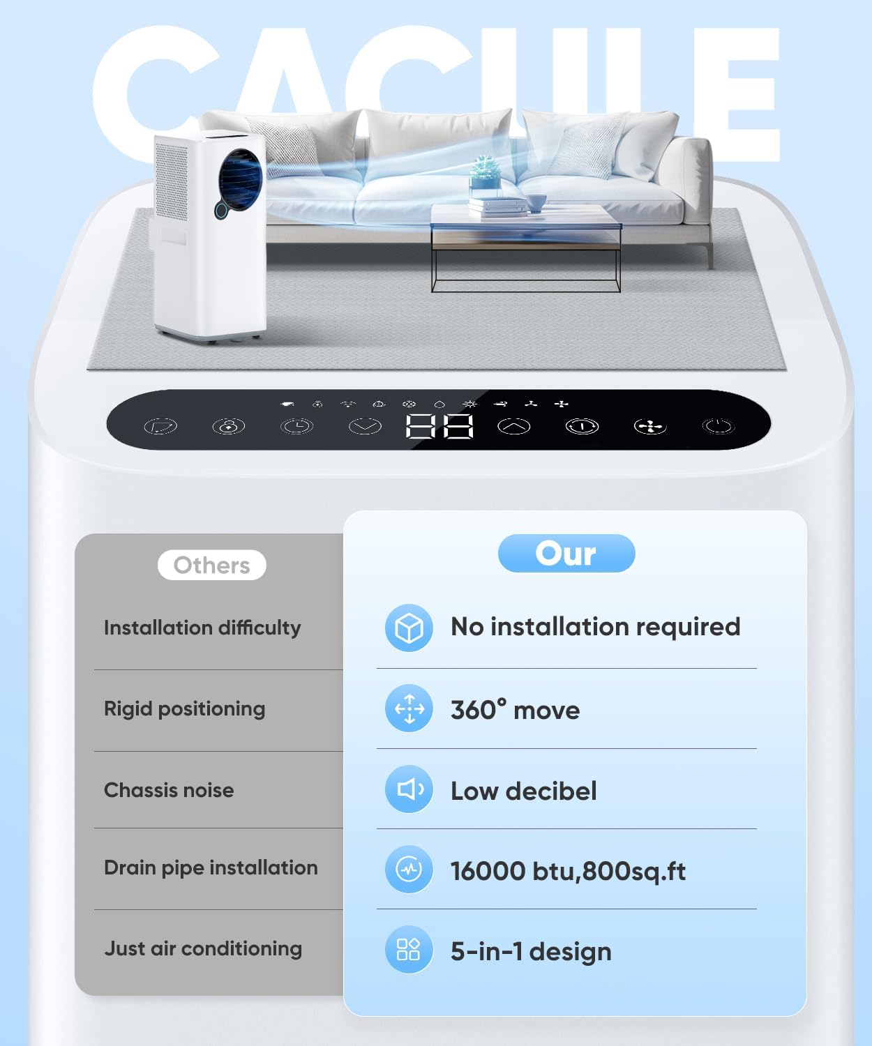 - Portable AC: Use this personal air conditioner in rooms up to 800 sq. ft. Stay cool in the hot summer months and sleep well with this CACULE ac unit for bedroom.