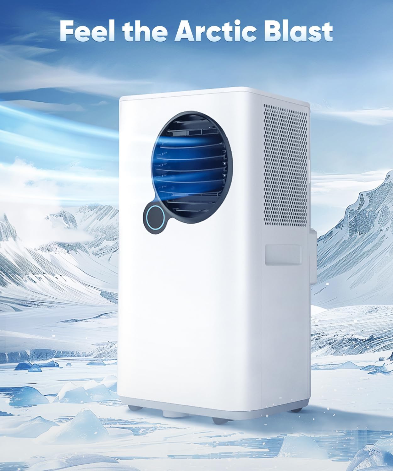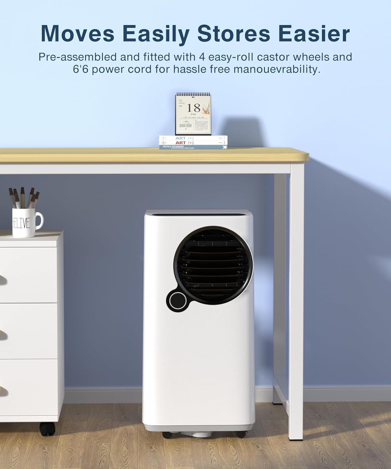 - Impressive Features: Set the temperature just right with this ac portable air conditioner. Our ac unit portable also has a slide-out washable filter, auto water evaporation, 24-hour timer.