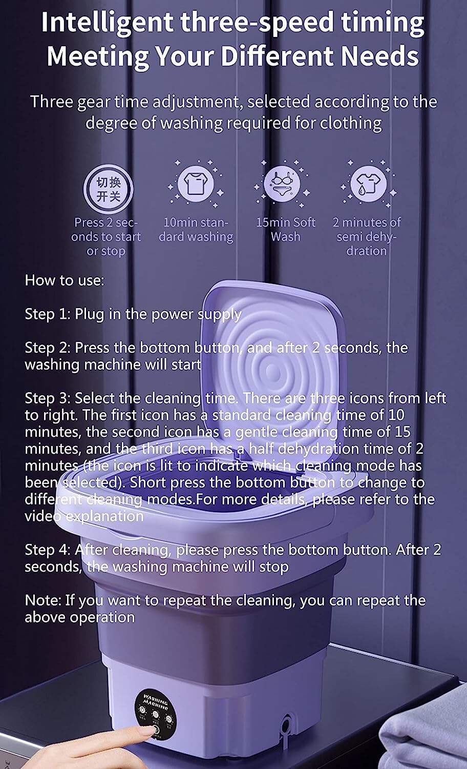 - Foldable Washing Machine : This washing machine is foldable that you can easily take it with you, suitable for both home and travel use.It is suitable for student dorms, apartments, senior homes, traveling, camping, business trip etc.
