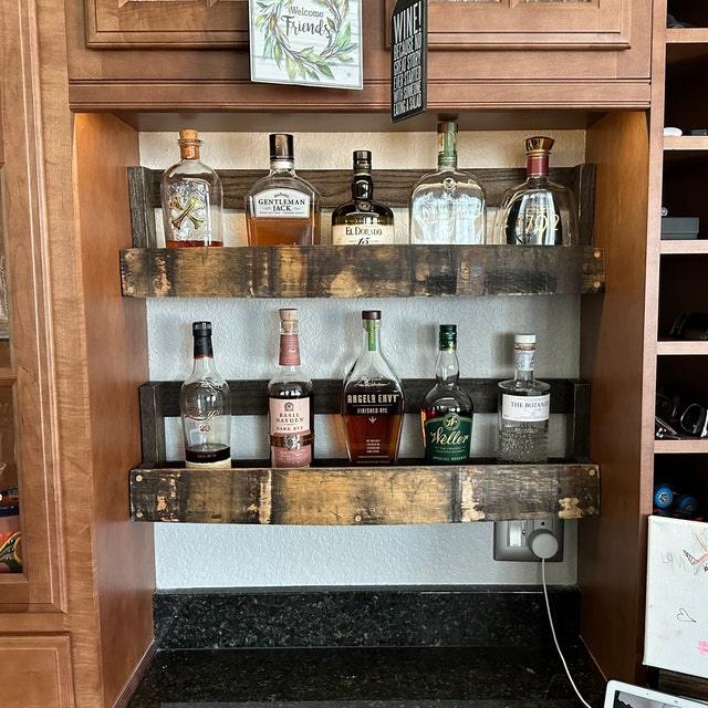 Display Your Collection in Authentic Style on this Bourbon Barrel Stave Shelf