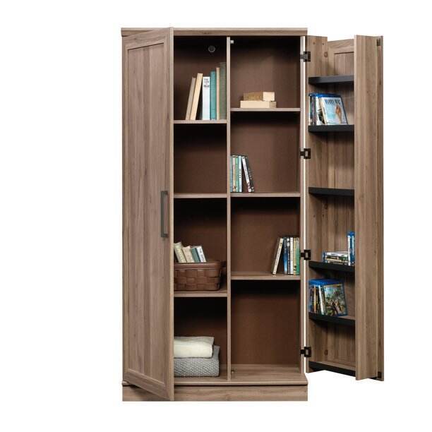 Behind each framed panel door are two adjustable shelves and one fixed shelf for customizable storage options for office supplies, pantry items, garage tools and more. Small doors include swing-out storage with three adjustable shelves and three fixed shelves - talk about storage!