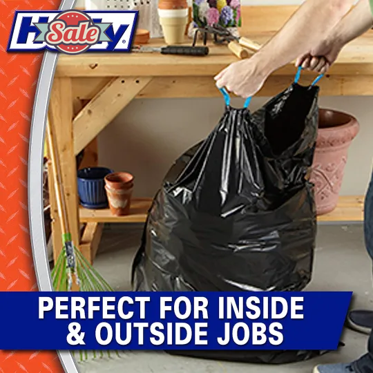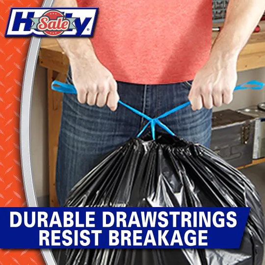 - DEPENDABLE DRAWSTRING CLOSURE—The durable drawstring on these plastic garbage bags makes it easy to transport heavy loads of donations, seasonal items and more to the curb