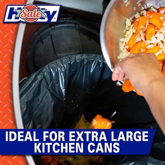 - SUPERIOR PUNCTURE RESISTANCE—Composed of signature Hefty quality and thick 1.05 millimeter plastic, these large trash bags help contain sharp indoor and outdoor debris