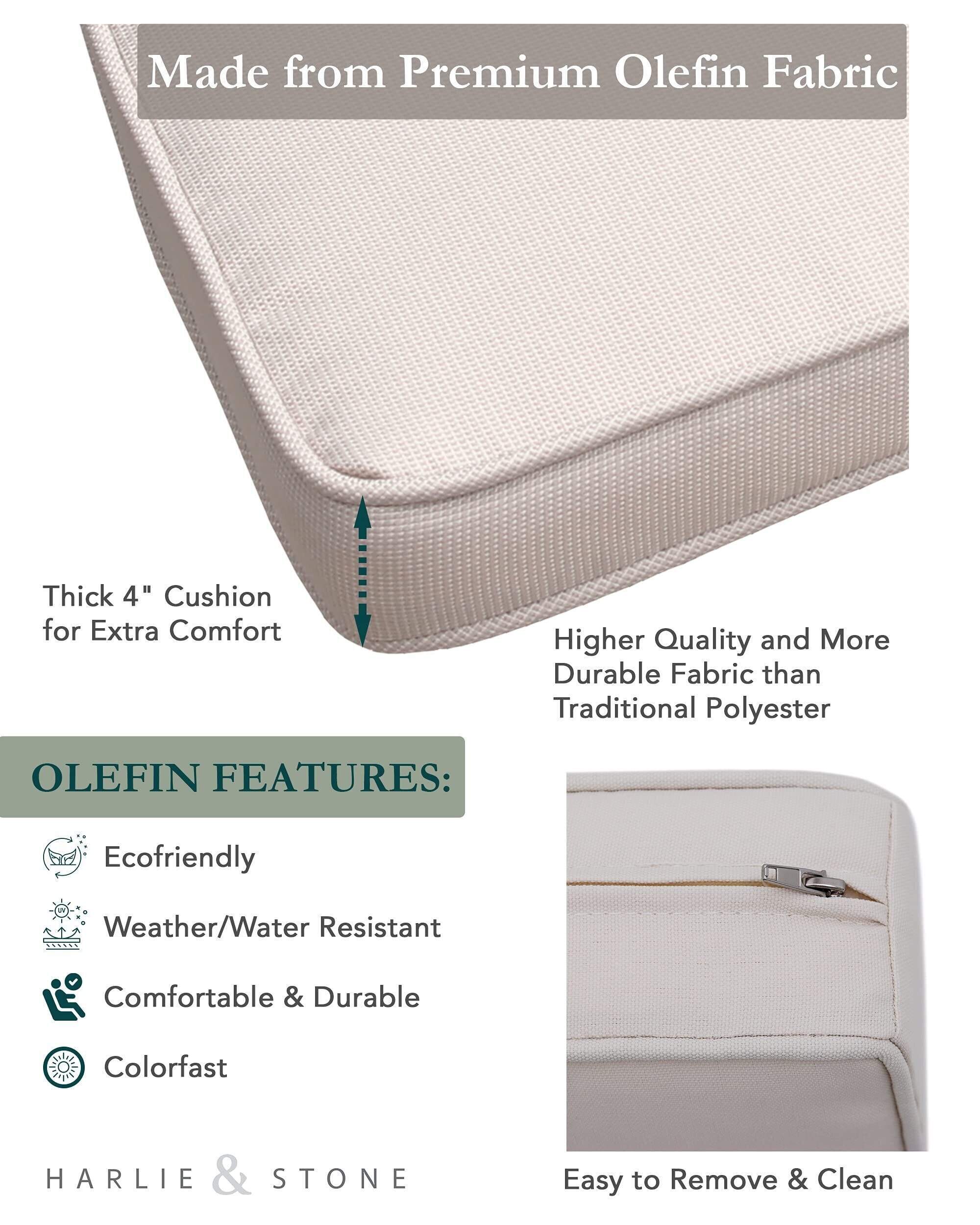 Made using the highest quality olefin fabric which is softer and more durable than regular polyester fabric. Seat cushions are 4 inches thick for that extra touch of comfort. |