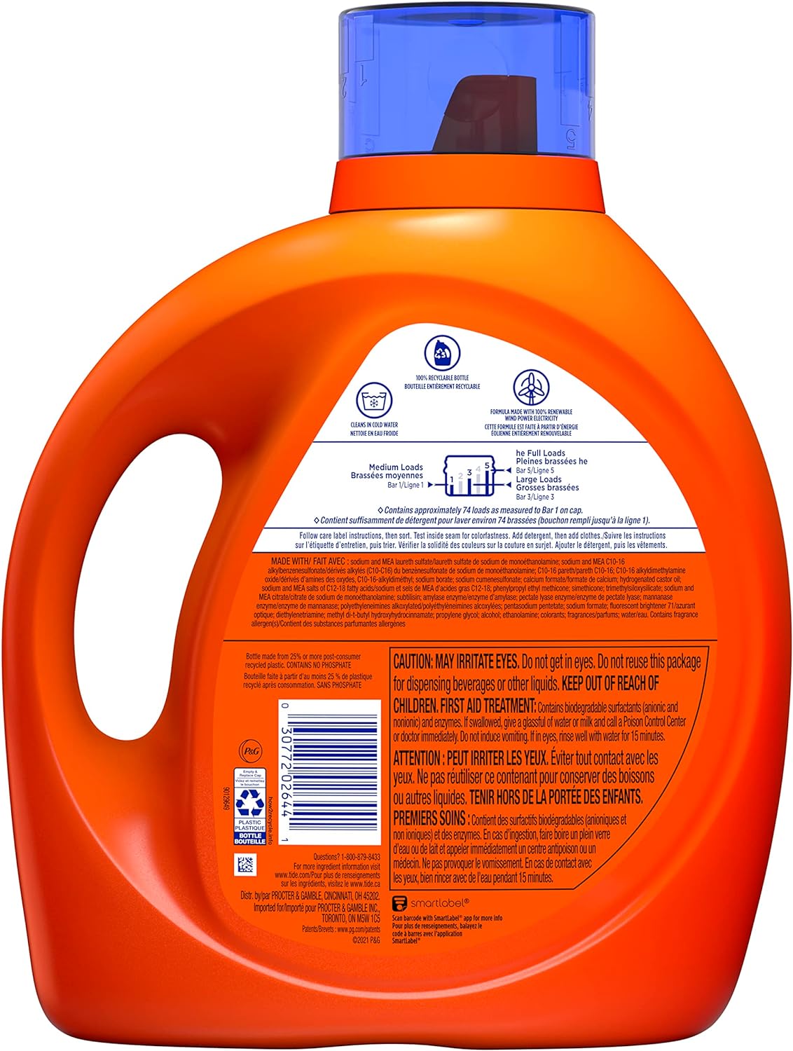 Tide Ultra OXI liquid laundry detergent provides built-in pre-treaters to remove even the toughest stains. It is now more concentrated to provide more stain removal and freshness and less water*. From America’s #1 detergent brand,** to cover your many laundry needs. Also try our small but powerful Tide PODS laundry pacs. Measure your loads with cap. For medium loads, fill to bar 1. For large loads, fill to bar 3. For HE full loads, fill to bar 5. Add clothes, pour into dispenser, start washer. * vs. previous formula ** Tide, based on sales