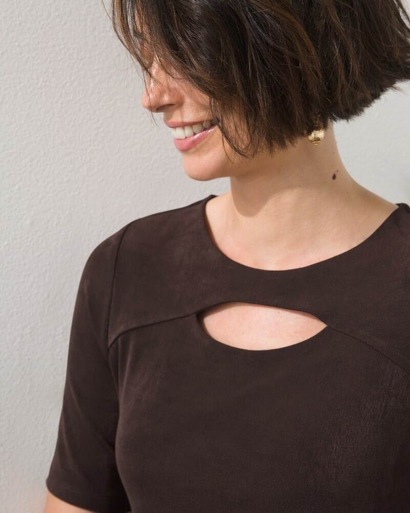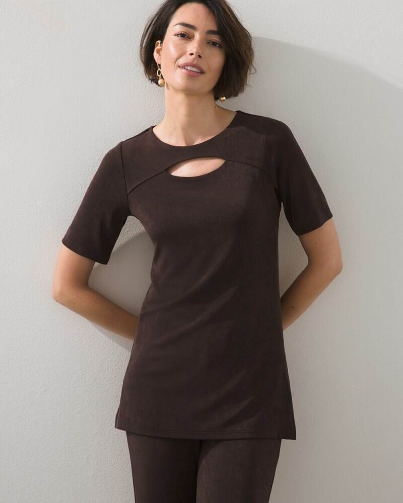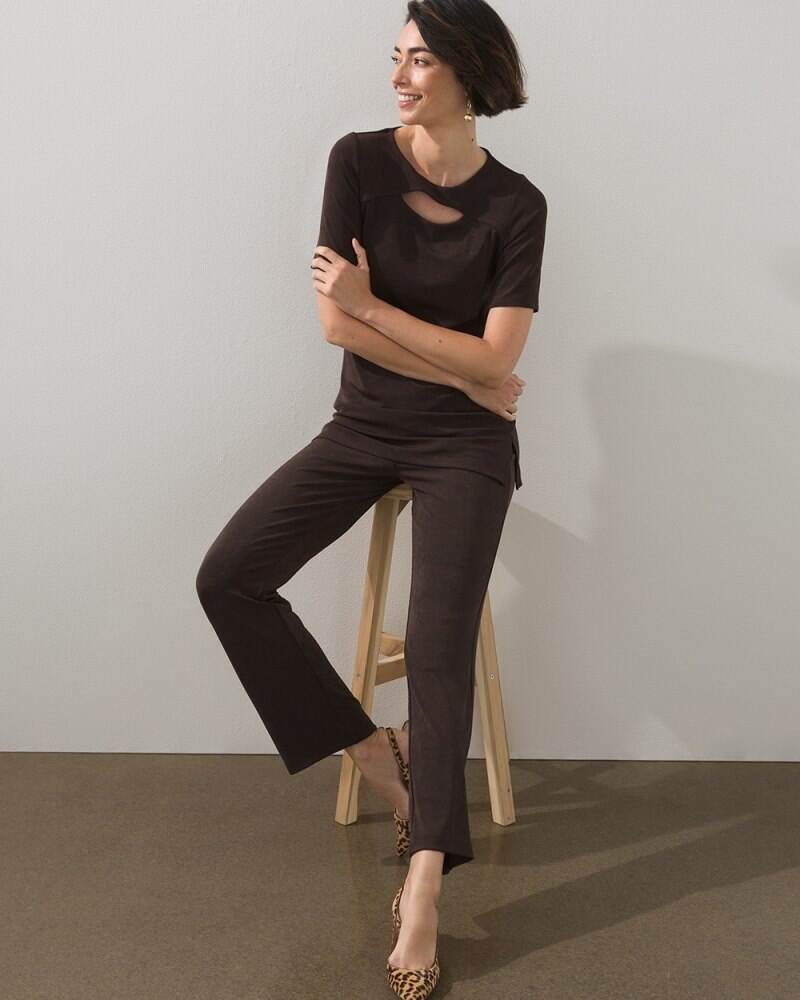 Making packing for your trip simple with our Travelers Keyhole Top. The elbow sleeves accent the flattering keyhole neckline. Made from our wrinkle-resistant fabric, this neutral-tone top makes your traveling options easy, especially when you pair it with our Travelers crops and pants.