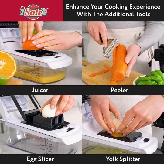 - Bonus handheld peeler, juicer, egg separator and slicer - juice your fresh lemons, separate your yolks from your egg whites and slice your hard-boiled eggs with ease with this all in one food choppers and dicers. Plus this set comes with a Bonus peeler that can both peel and julienne your veg. These are in demand kitchen gifts for women and men this season!