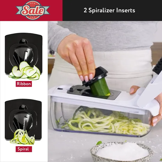 - Best functionality on the market - Everything you need are all in our all-in-one multipurpose cooking gadgets. 7 easy to change inserts including two different sized chopper blades and two spiralizer inserts give you the option of broad ribbons or thin spirals. Our vegetable choppers make nifty cooking gifts for women and men.