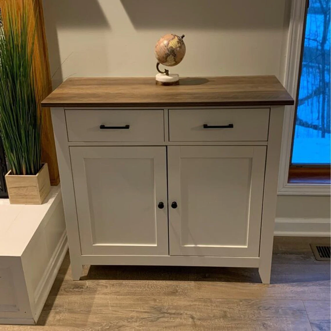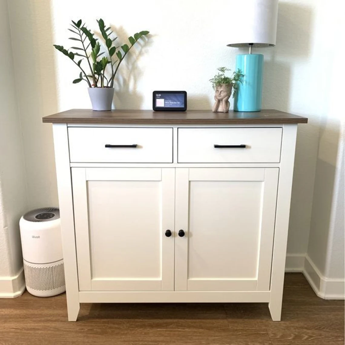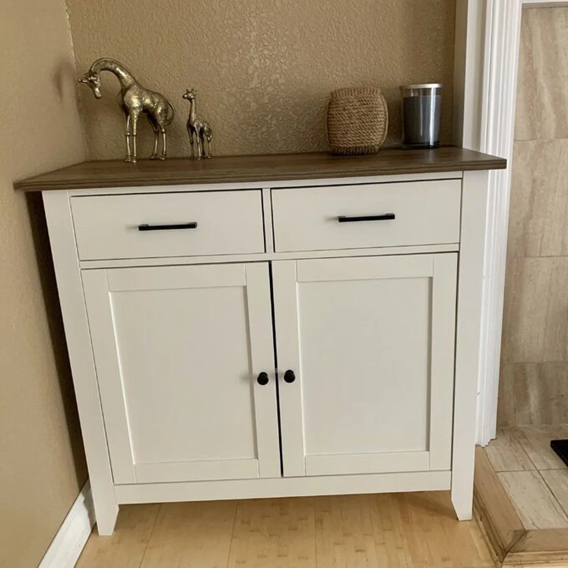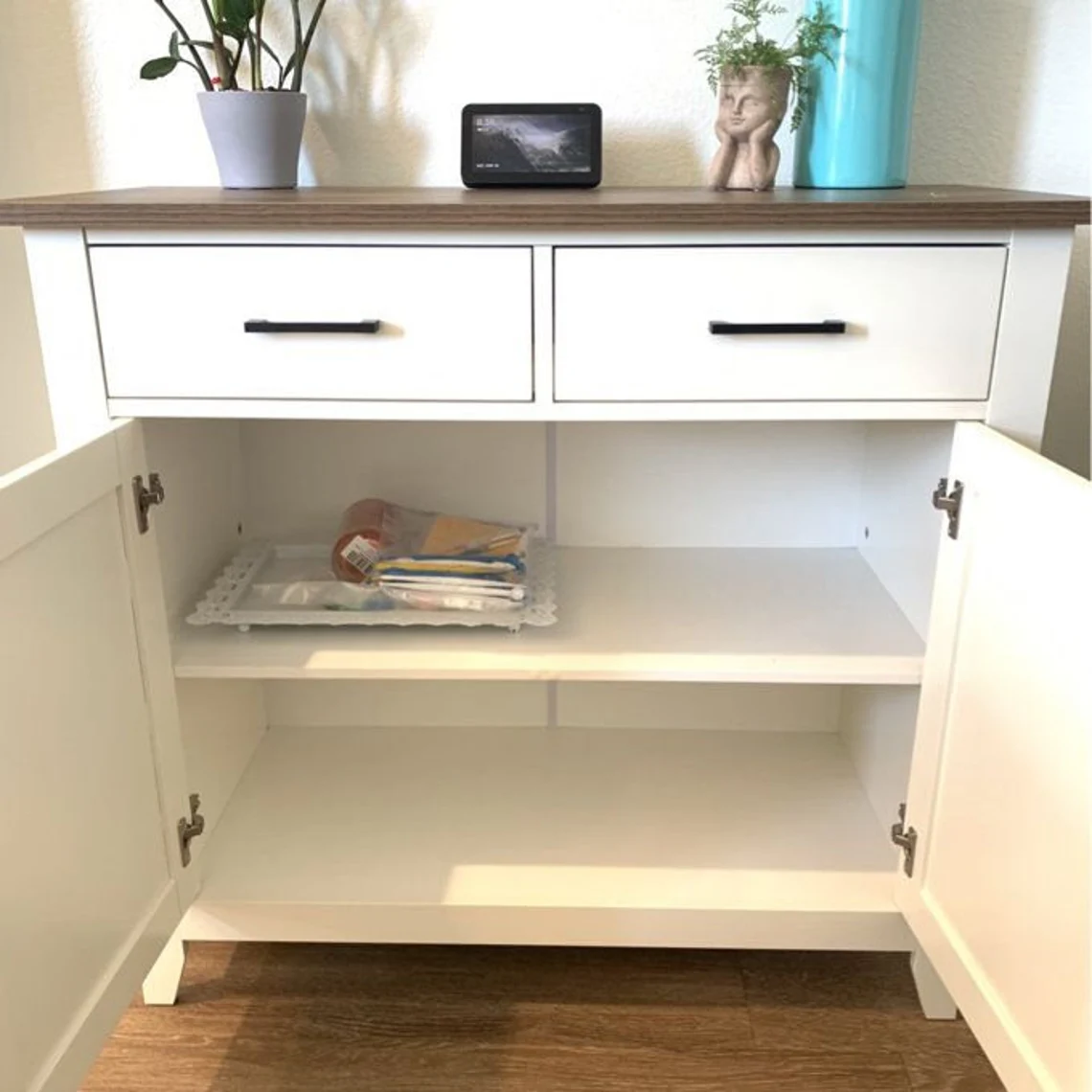 -Excellent appearance - With an ivory white body, wood top, and classic black handles, this sideboard can bring a unique finishing touch to your home.