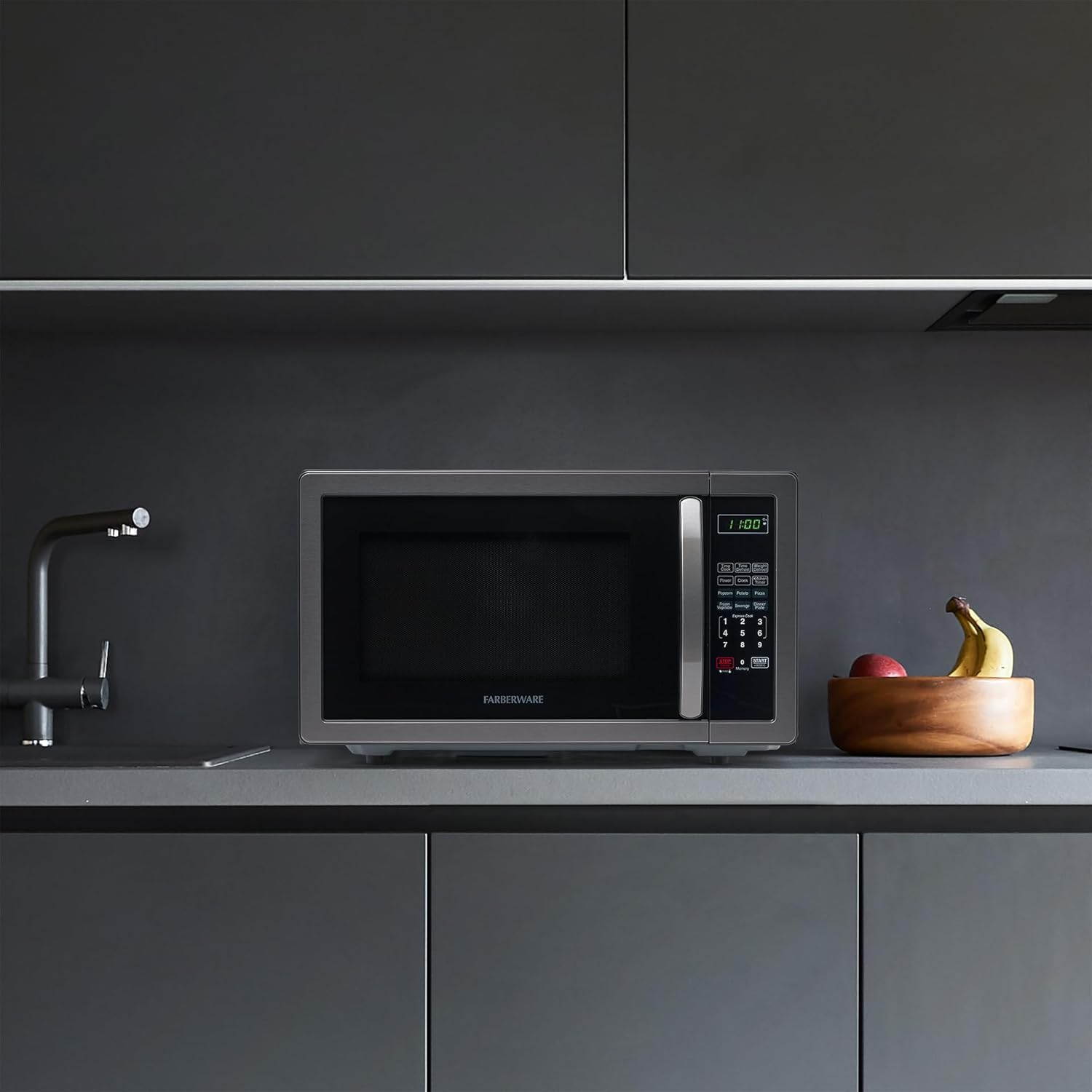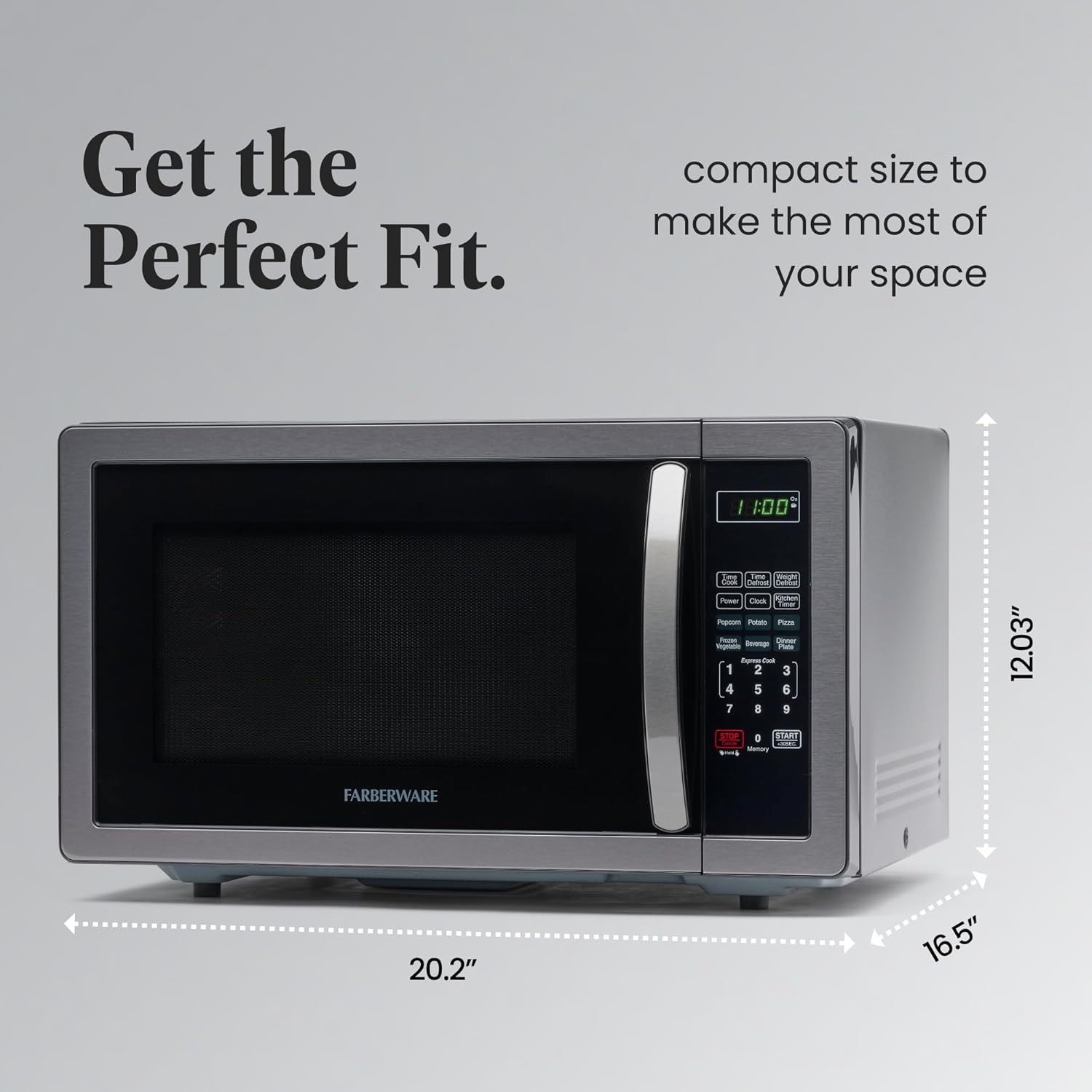 • Farberware Countertop Microwave 1000 Watts, 1.1 cu ft - Microwave Oven With LED Lighting and Child Lock - Perfect for Apartments and Dorms - Easy Clean Stainless Steel