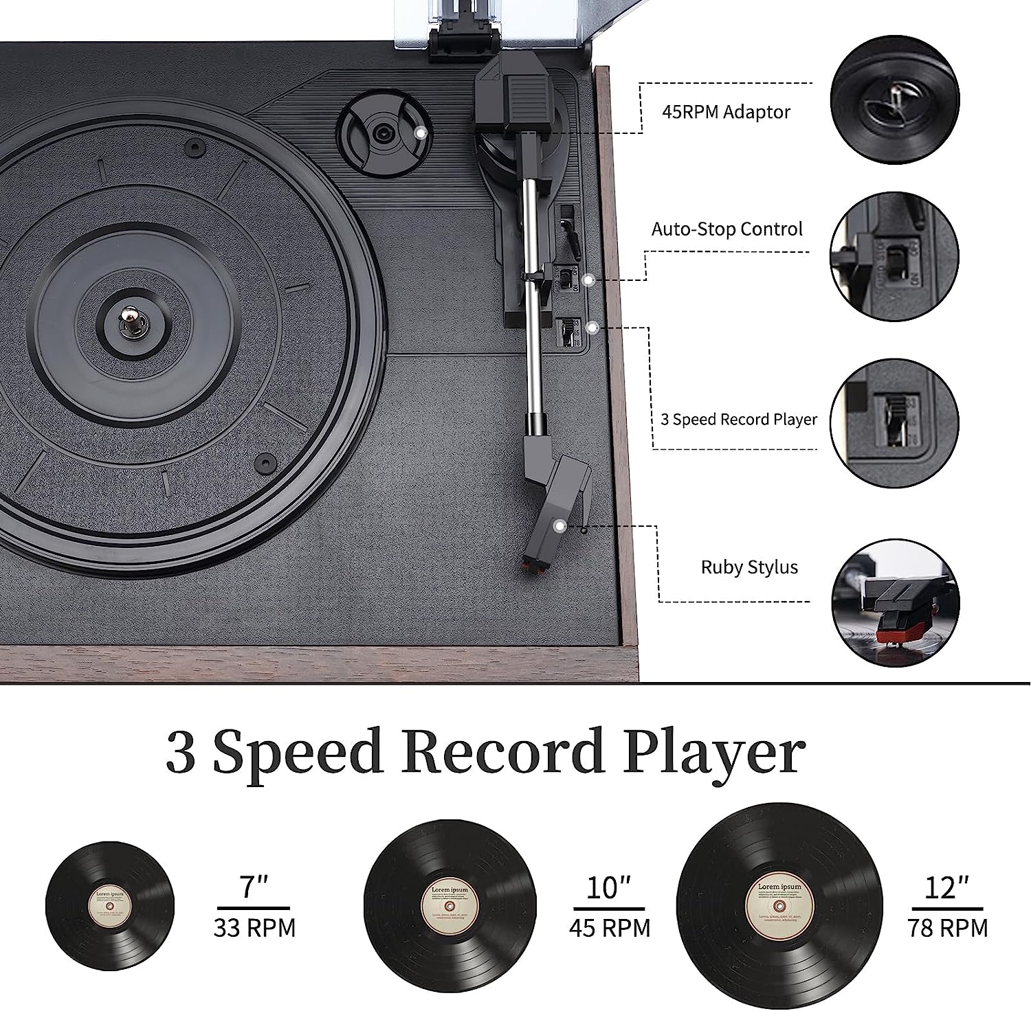 ✨3-Speed Vinyl Record Player