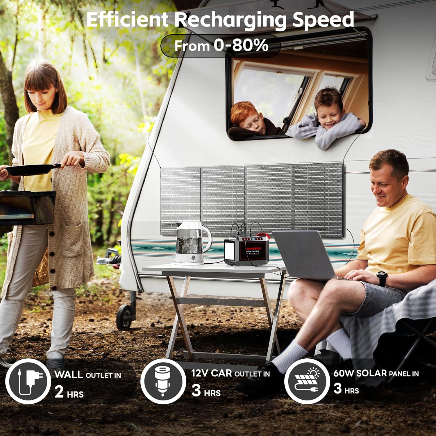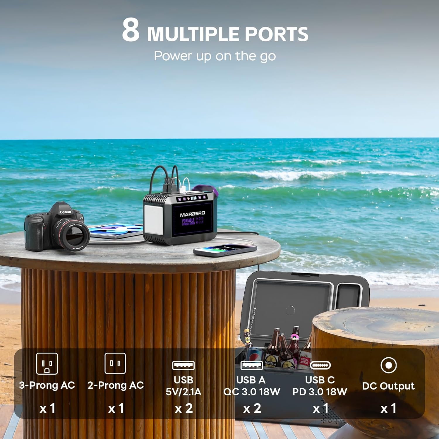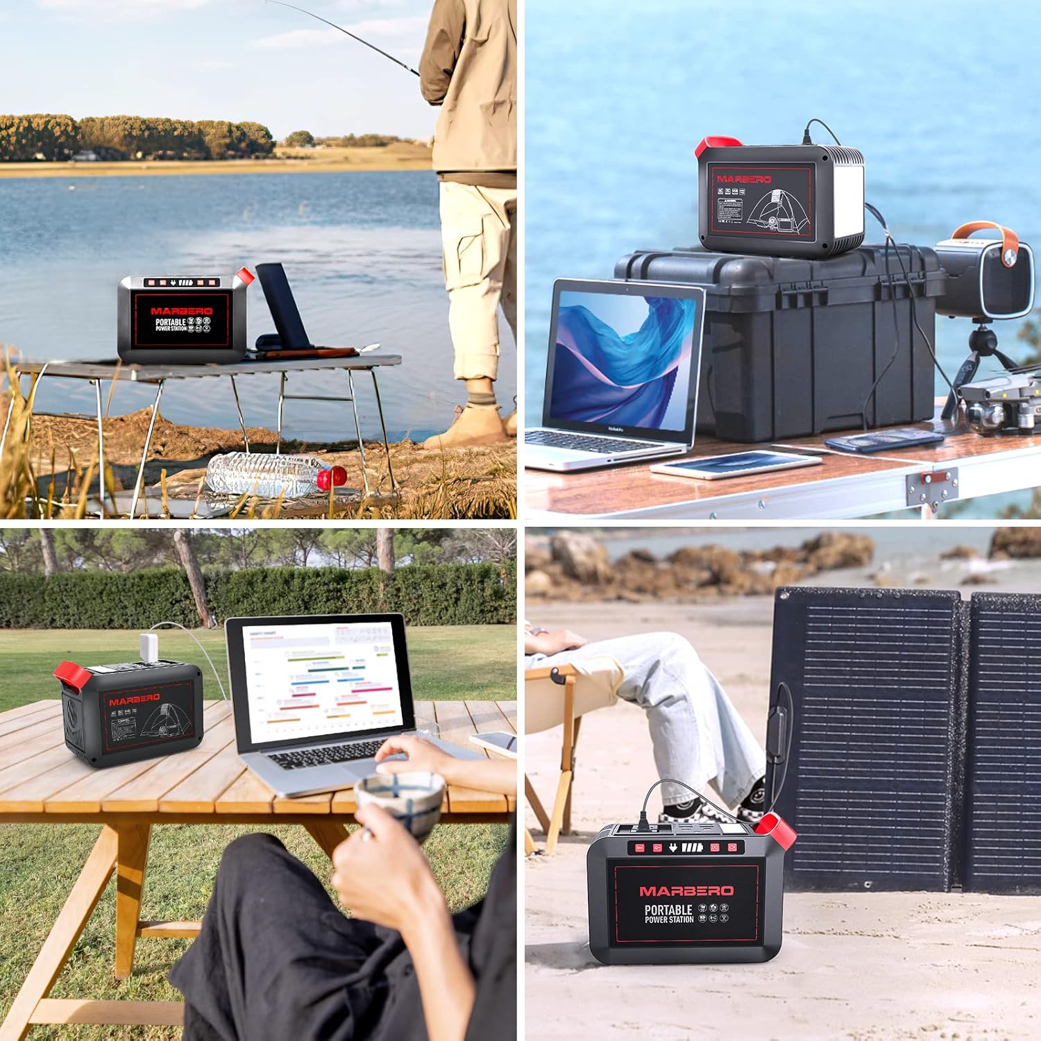 - EFFICIENT CHARGING: Use the adapter included in the package to charge the power station from 0 to 80% in 2hrs, and use the this power supply to charge other devices at the same time while charging, which could be equivalent to a charging strip , improving the efficiency of uses. It can be charged efficiently with MARBERO's dedicated 30W or 60W solar panel, suitable for outdoor or backyard camping