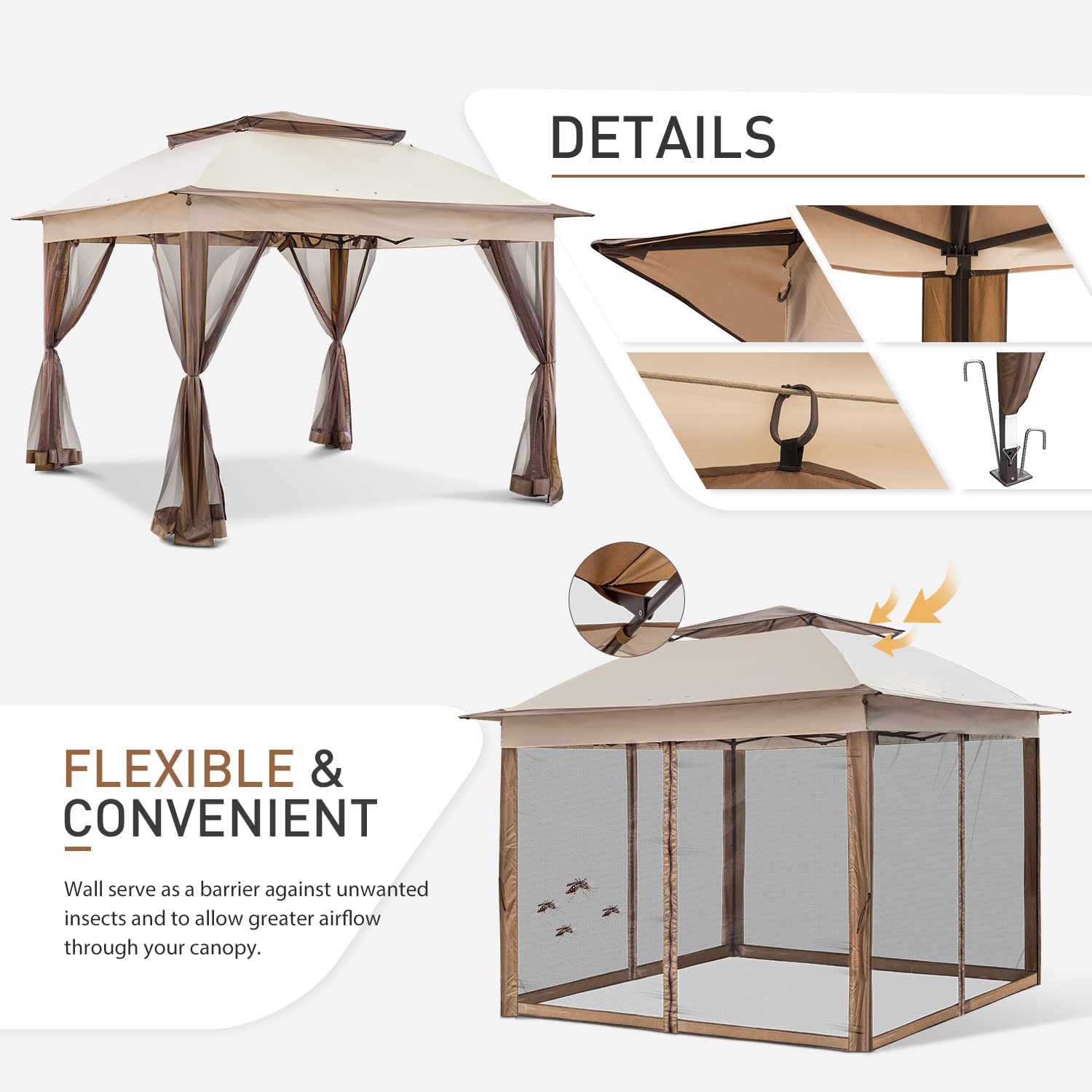11x11 Pop-Up Instant Gazebo Tent with Mosquito Netting Outdoor Canopy Shelter with 121 Square Feet of Shade by COOS BAY