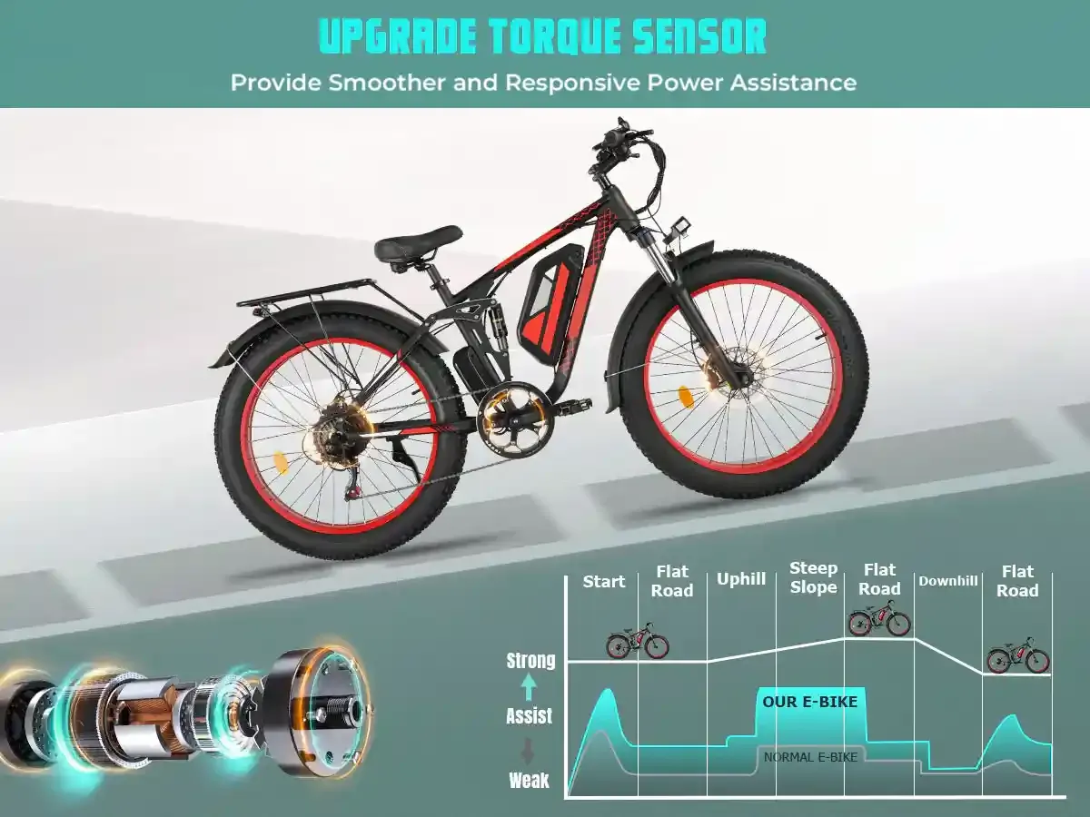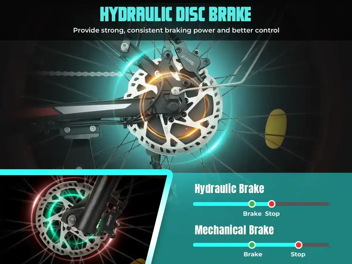 Equipped with front and rear hydraulic disc brakes, this electric moped can easily brake within 2 seconds, safe and professional. A lockable suspension fork helps you reduce fatigue and enjoy a smooth ride, no matter the terrain.
