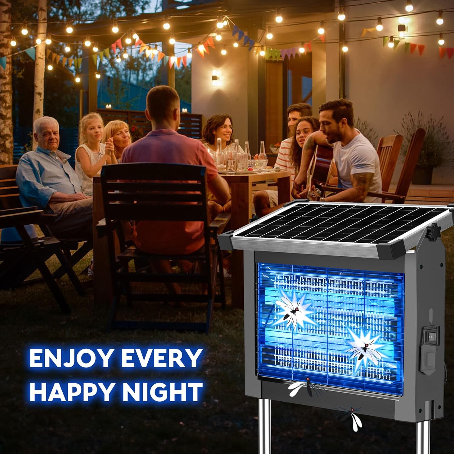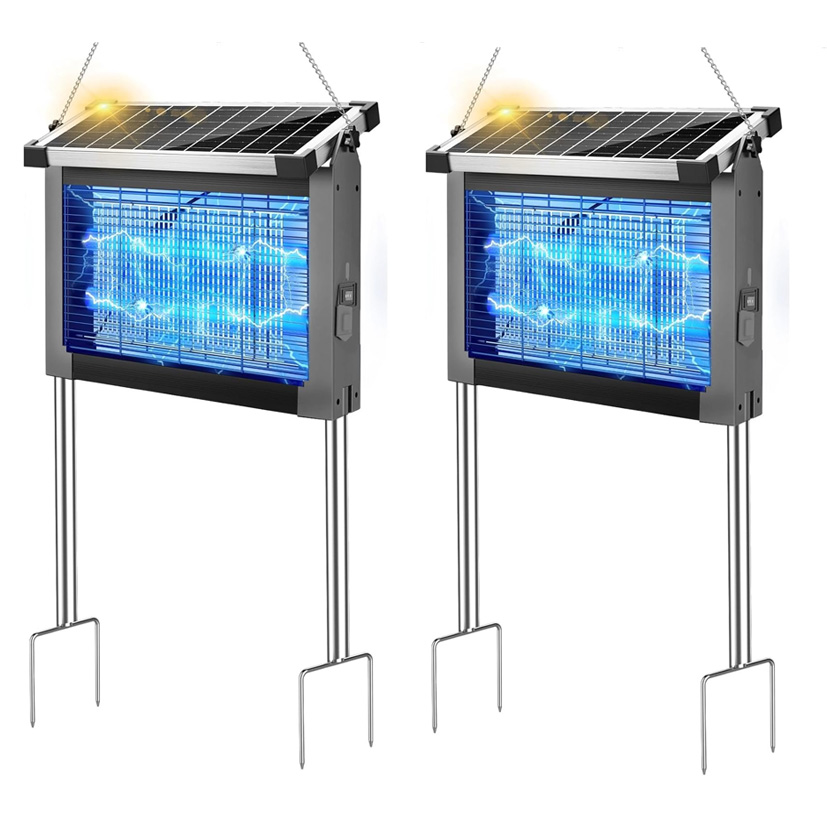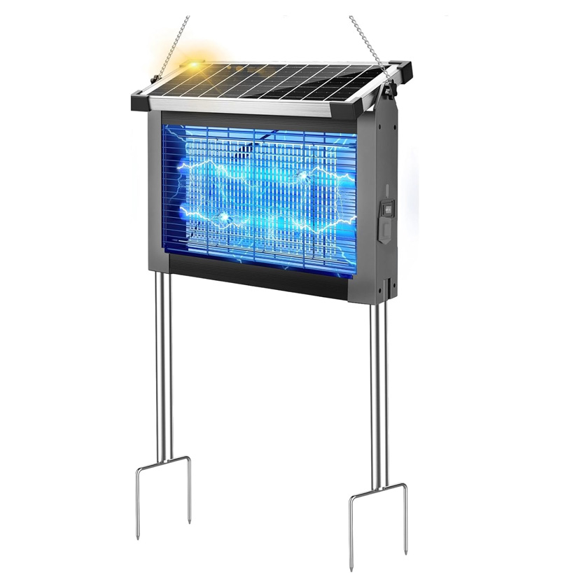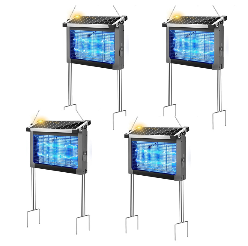 - 4-in-1 UPGRADED SOLAR BUG ZAPPER - Bug zapper combines 4 functions in 1: Solar Bug Zapper,Outdoor Indoor Bug Zapper, Portable Cordless Fly Zapper, Camping Bug Zapper. Solar power design features to utilizes solar power for hassle-f r e e operation, it effortlessly attracts & eliminates a wide range of annoying flying pests, like gnats, mosquitoes, flies, moths, bees, wasps, etc. Our mosquito zapper doesn't use any chemicals and will not emit irritating odor, which is harmless to human and pet