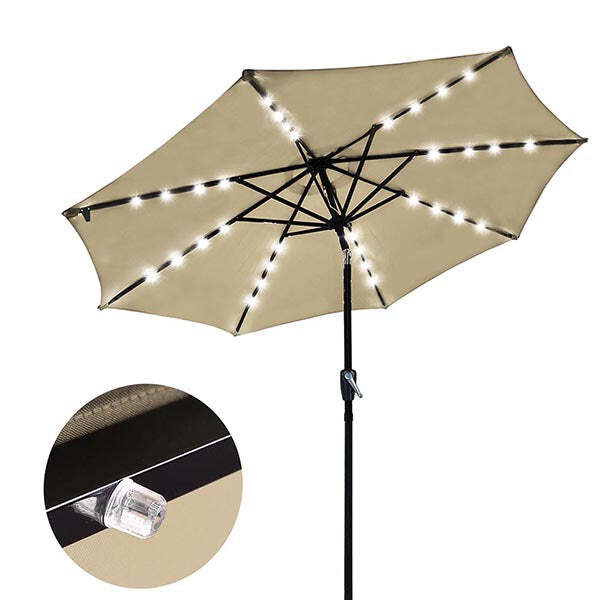 Yescom 9ft Solar LED Outdoor Market Tilt Patio Umbrella